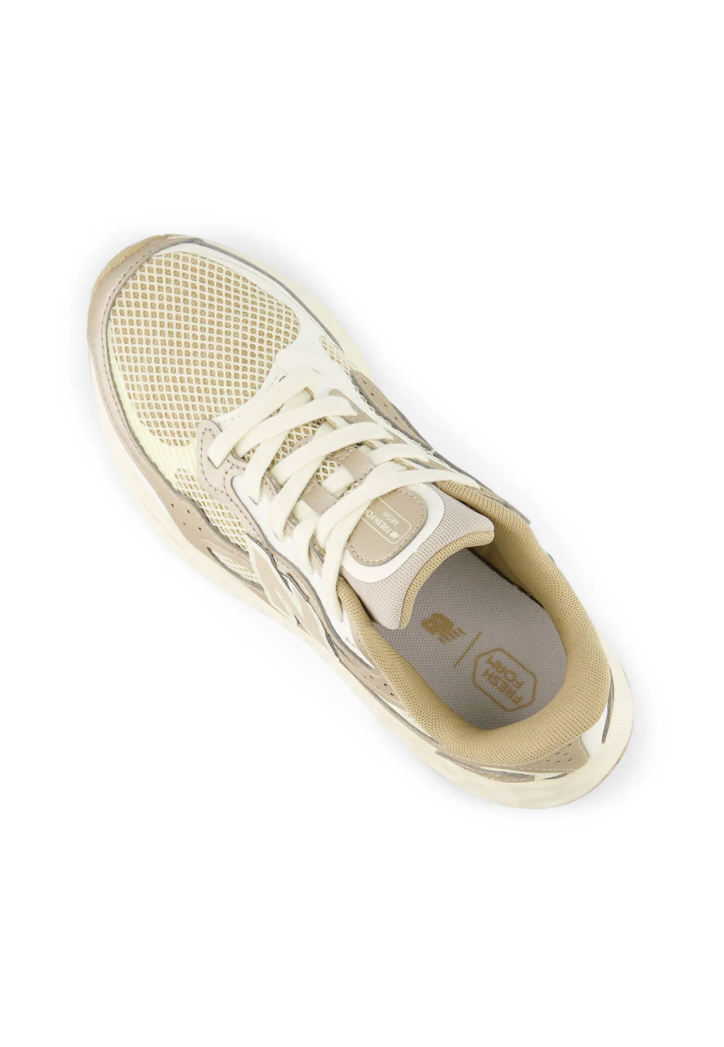 Der New Balance Arishi V4 kombiniert stilvolles Design mit funktionaler Performance. Der vielseitige Laufschuh für Damen bietet eine leichte Dämpfung durch die innovative Fresh Foam-Mittelsohle, was für hohen Tragekomfort bei sportlichen Aktivitäten und im Alltag sorgt. Das atmungsaktive Mesh-Obermaterial gewährleistet gute Belüftung und eine angenehme Passform. Mit seinem eleganten Farbschema in Beige und Weiß lässt sich der Arishi V4 W ideal zu verschiedenen Outfits kombinieren.
