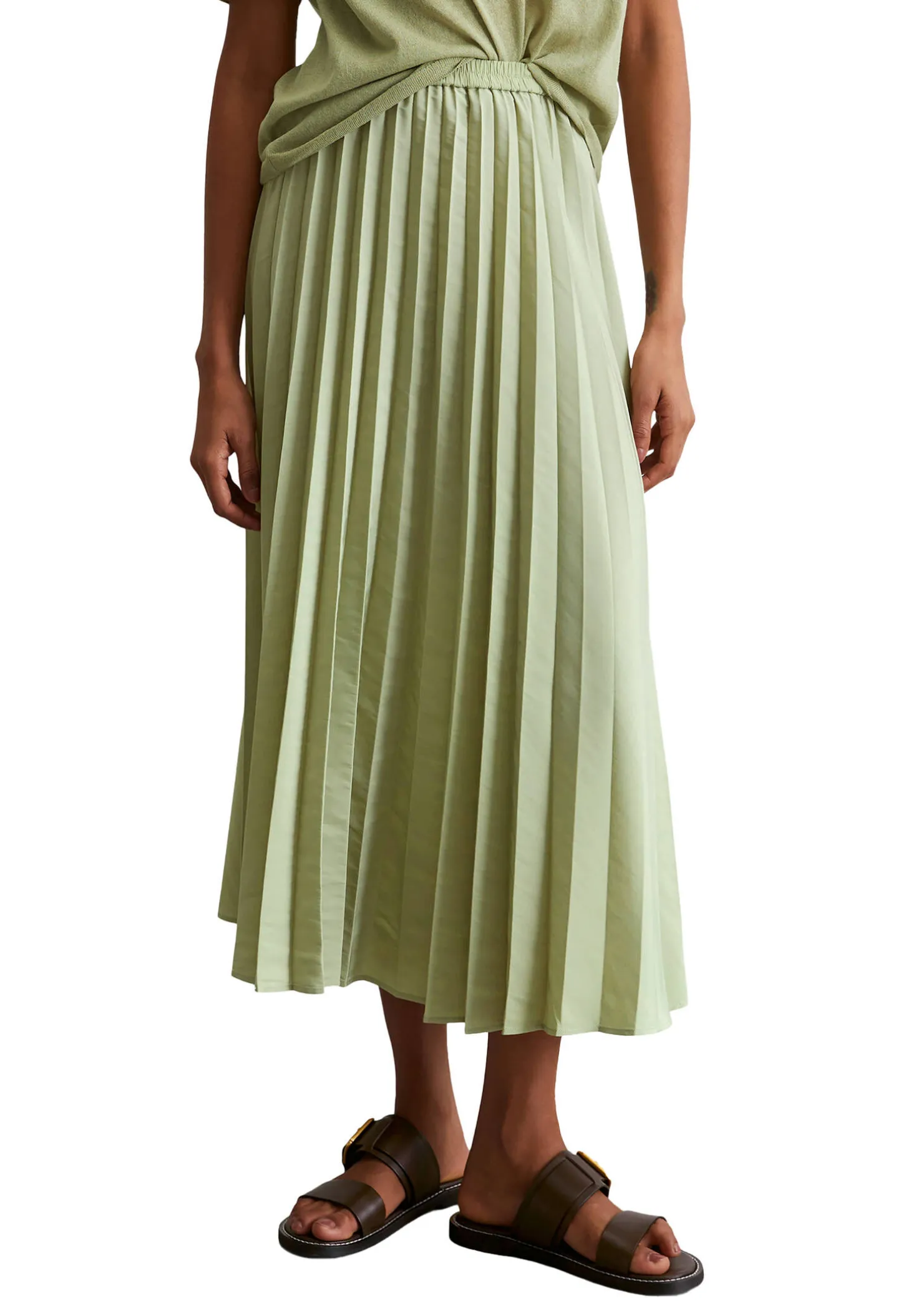 Der Plisseerock von Marc O’Polo besticht durch seine fließende, schwungvolle Silhouette und zeitgemäßer Materialqualität.