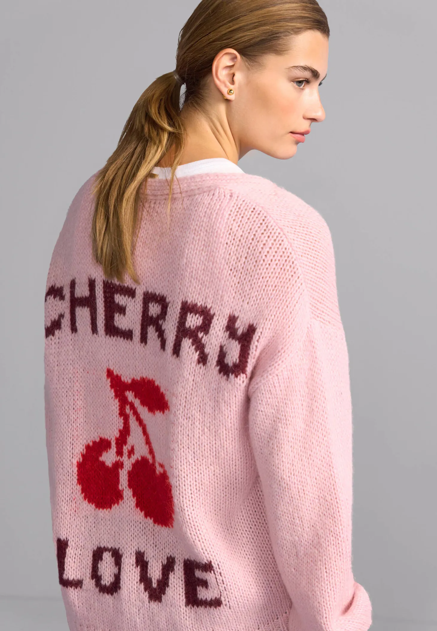 - Intarsienstrick mit Kirschenmotiv an der Rückseite