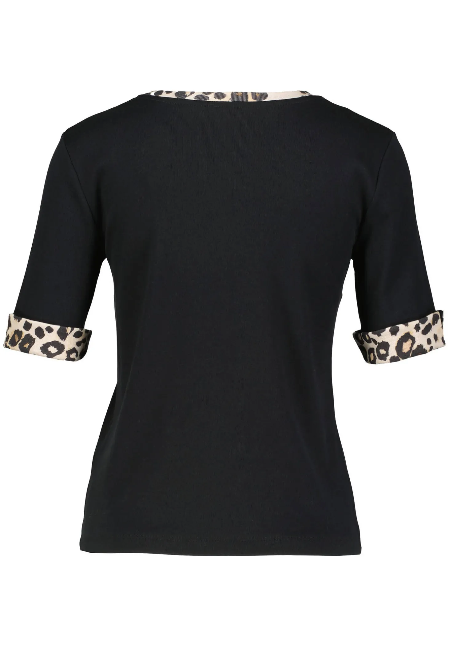 - Besätze an Ausschnitt und Ärmeln mit Animal Print