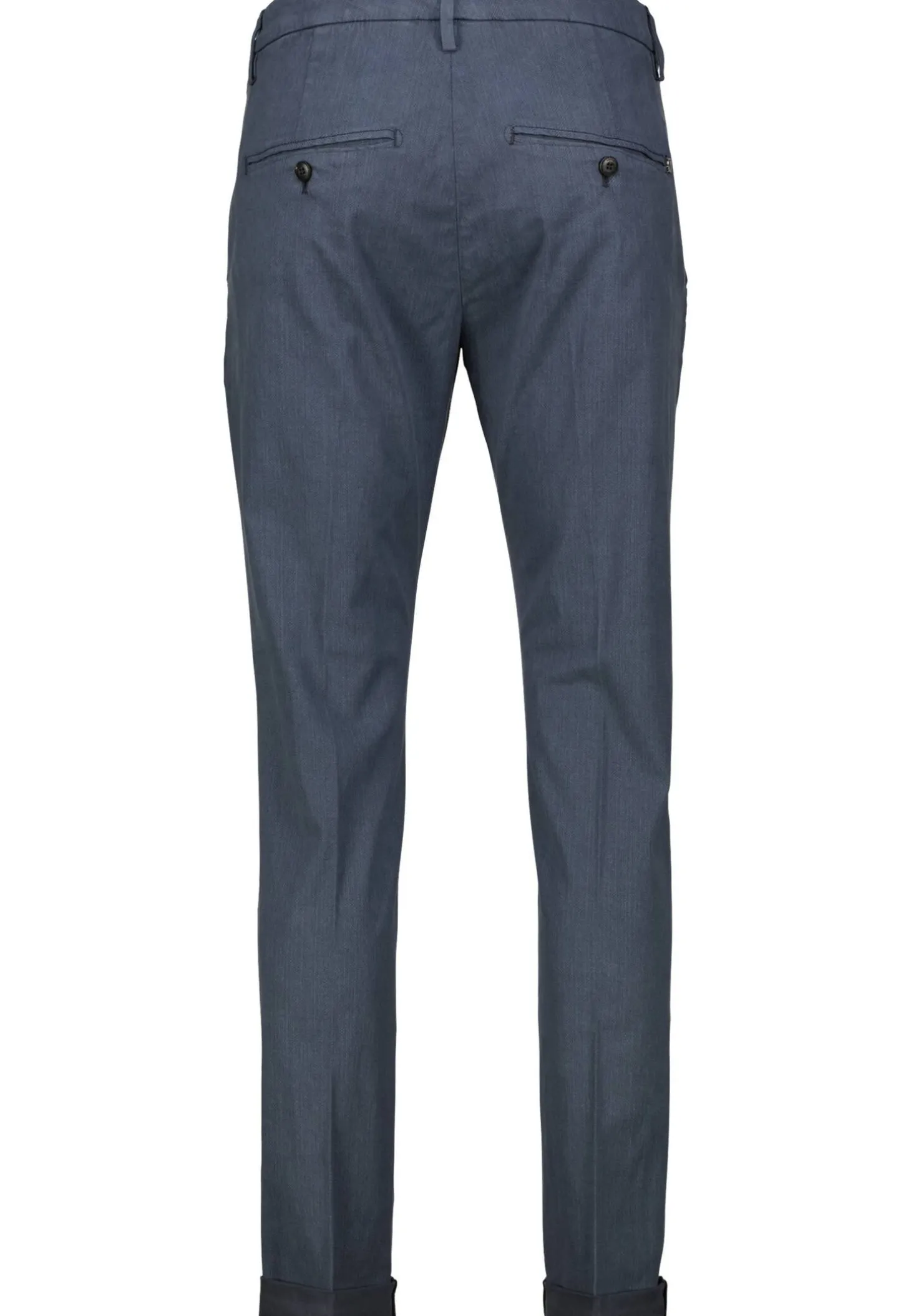 - Zwei Paspeltaschen mit Knopf an der Rückseite