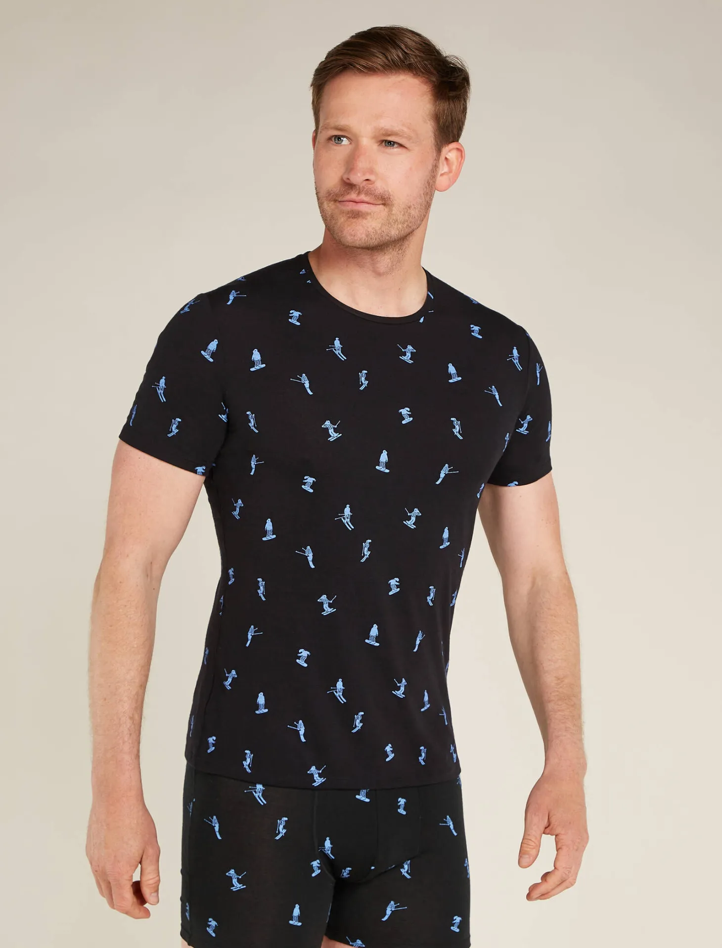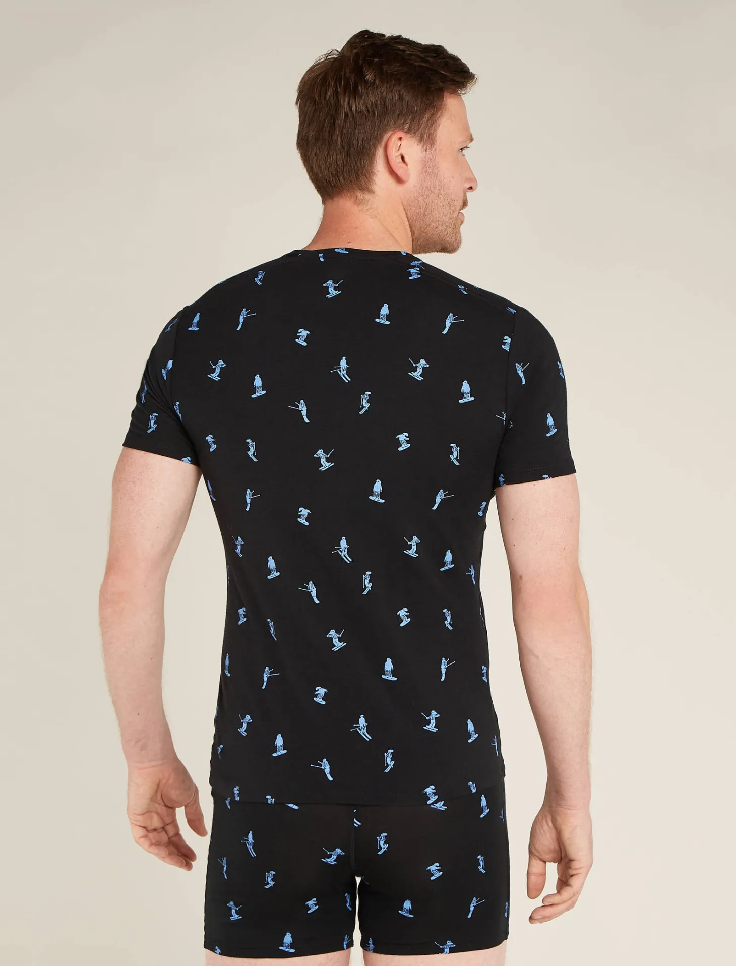 - einzigartige Allover-Druck zeigt Skifahrer und Snowboarder, die die Pisten hinunterfahren