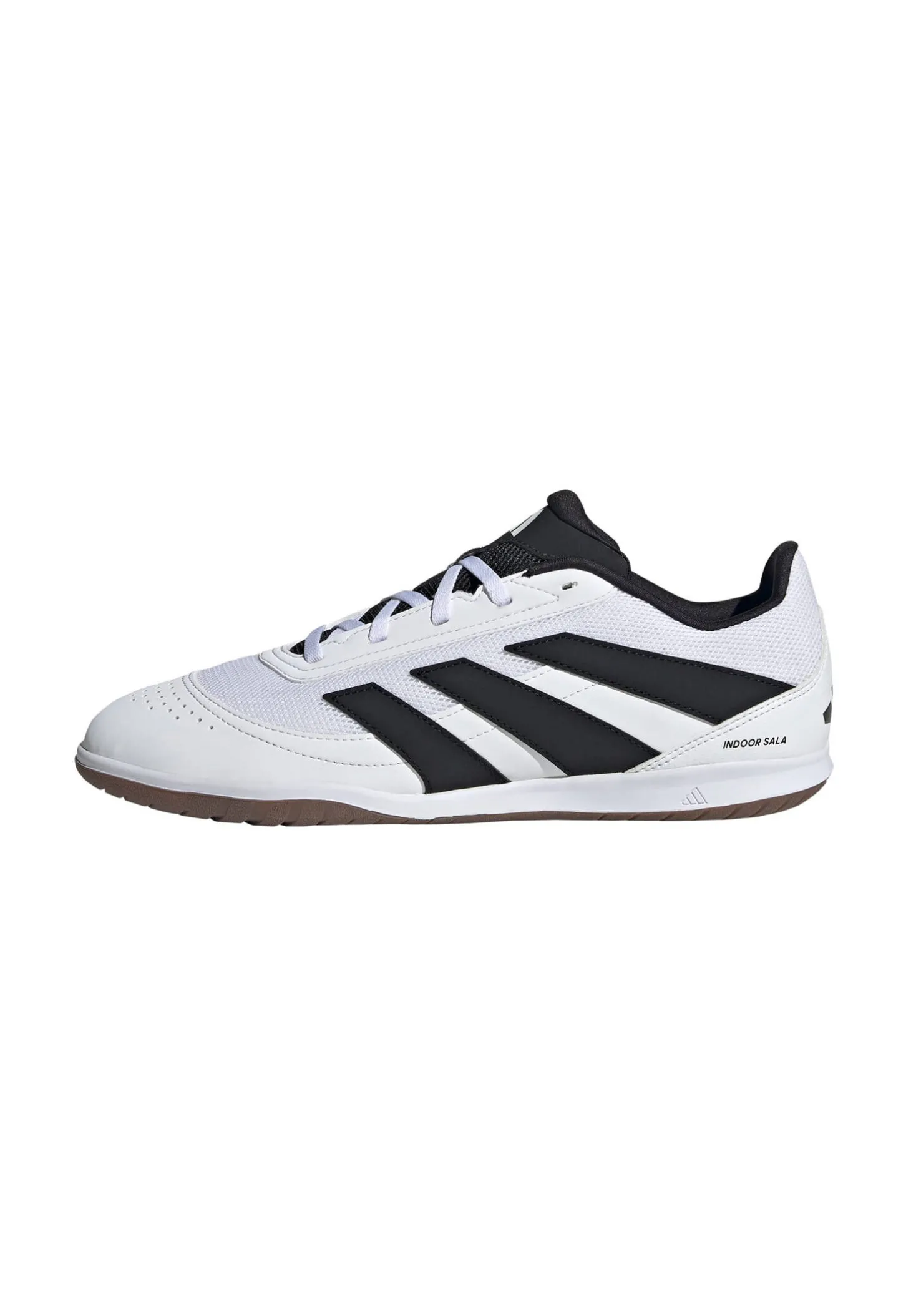 Deradidas Predator Club Indoor Salaist ein speziell für schnellen Futsal entwickelter Fußballschuh mit atmungsaktivem Mesh-Obermaterial, strapazierfähigem TPU-Besatz und griffiger, abriebfreier Gummisohle – für präzises Spiel und sicheren Halt auf glatten Hallenböden.