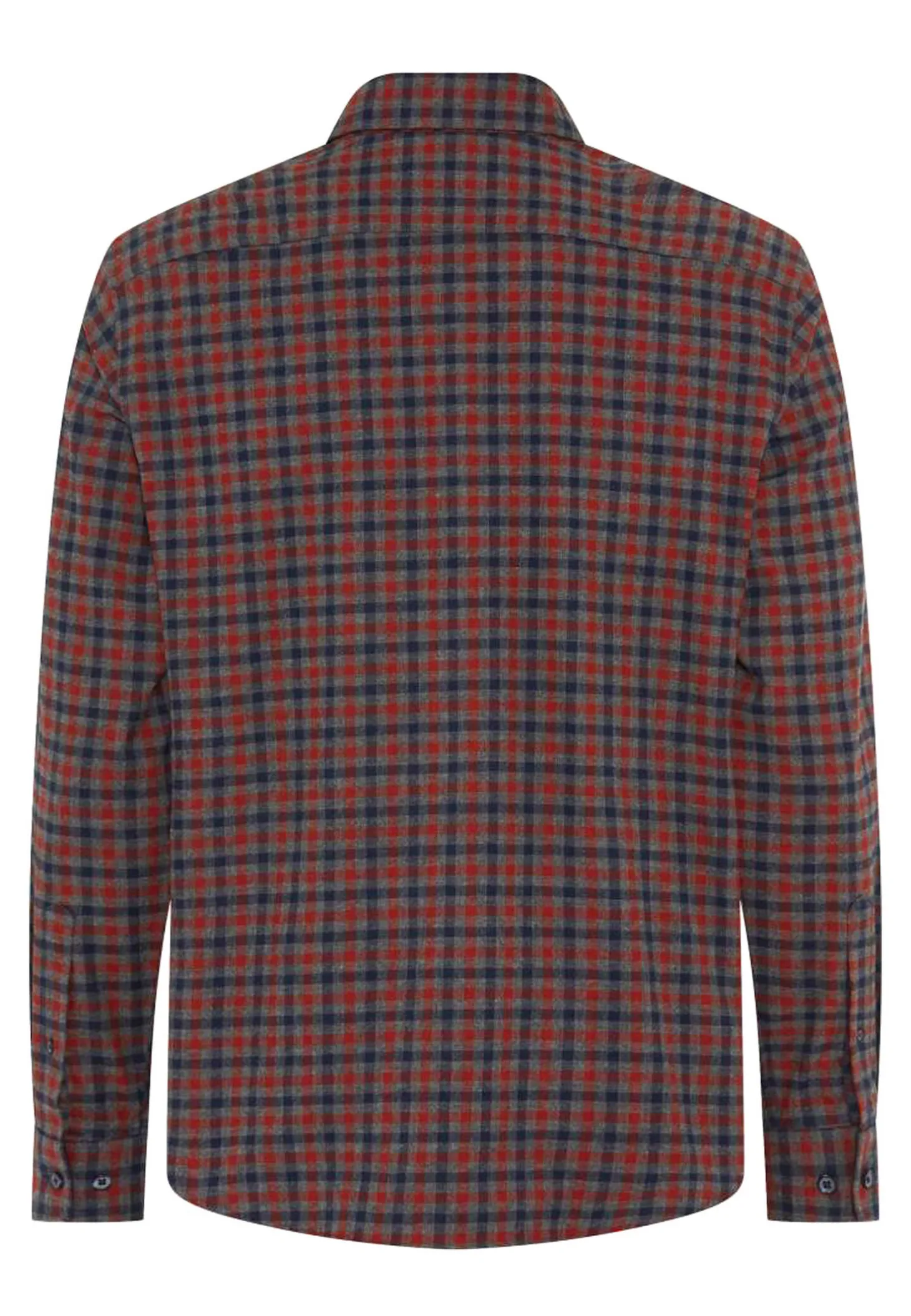 Dieses leicht taillierte Herrenhemd aus reiner Baumwolle besticht durch seine weiche Flanell-Qualität und ein dezentes Karomuster, ergänzt durch eine aufgesetzte Brusttasche.