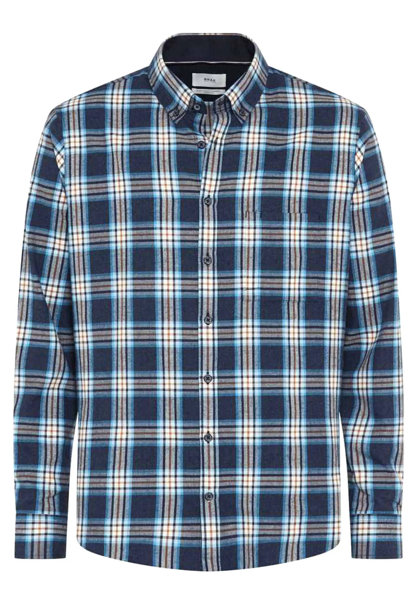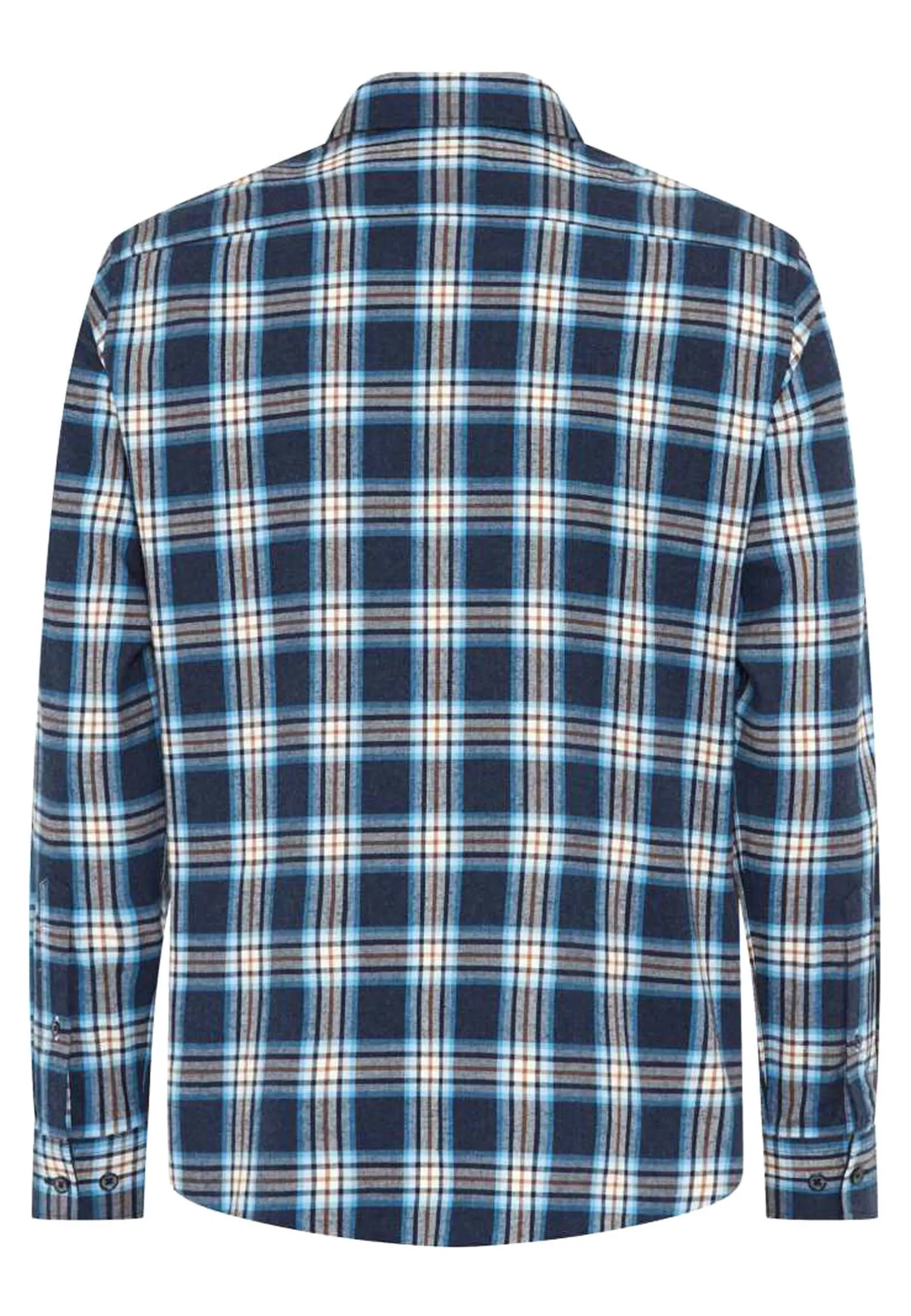 Dieses leicht taillierte Herrenhemd aus reiner Baumwolle besticht durch seine weiche Flanell-Qualität und ein dezentes Karomuster, ergänzt durch eine aufgesetzte Brusttasche.