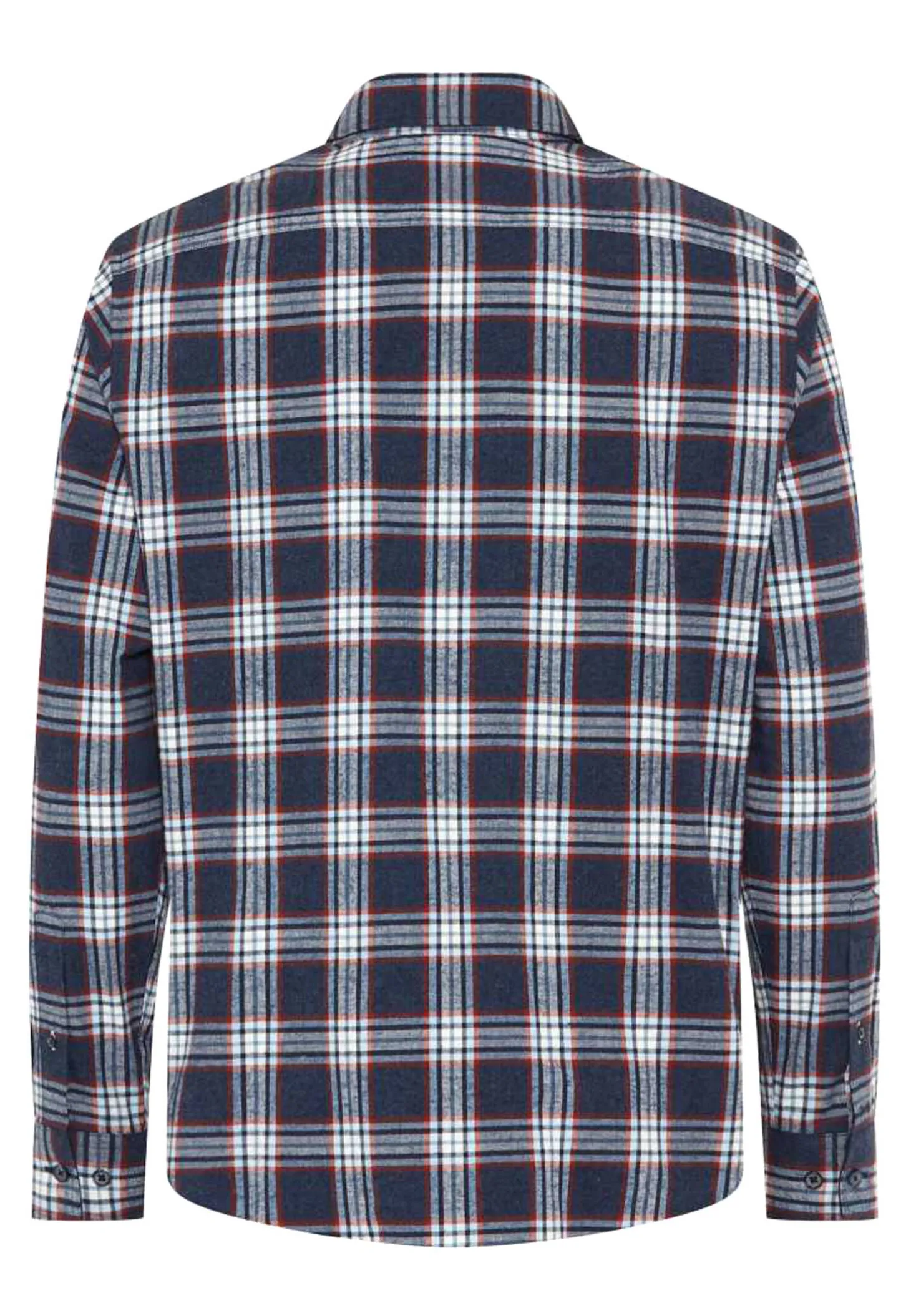 Dieses leicht taillierte Herrenhemd aus reiner Baumwolle besticht durch seine weiche Flanell-Qualität und ein dezentes Karomuster, ergänzt durch eine aufgesetzte Brusttasche.