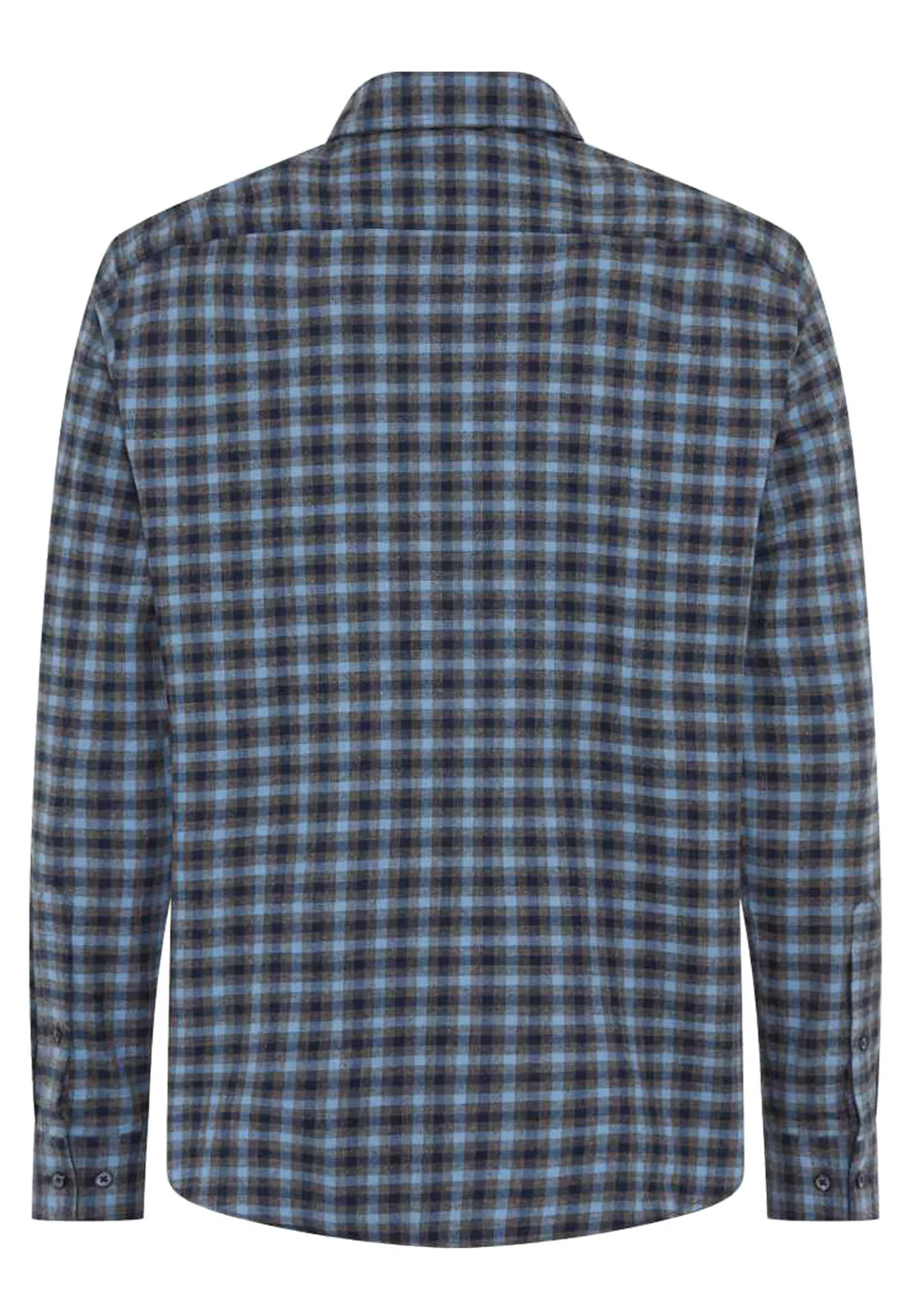 Dieses leicht taillierte Herrenhemd aus reiner Baumwolle besticht durch seine weiche Flanell-Qualität und ein dezentes Karomuster, ergänzt durch eine aufgesetzte Brusttasche.