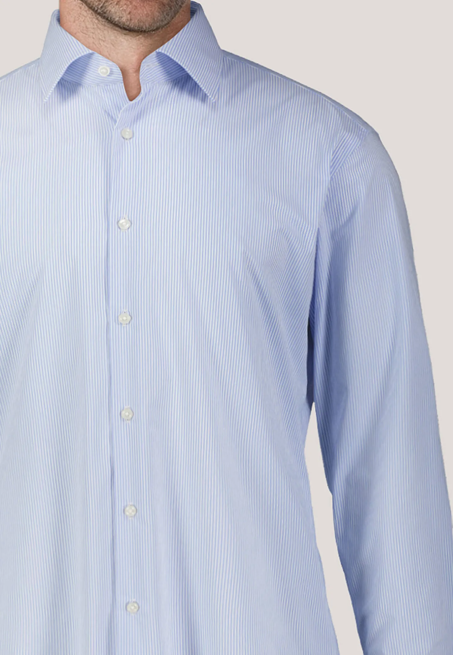 - Ausschnitt & Kragen: Kent-Kragen