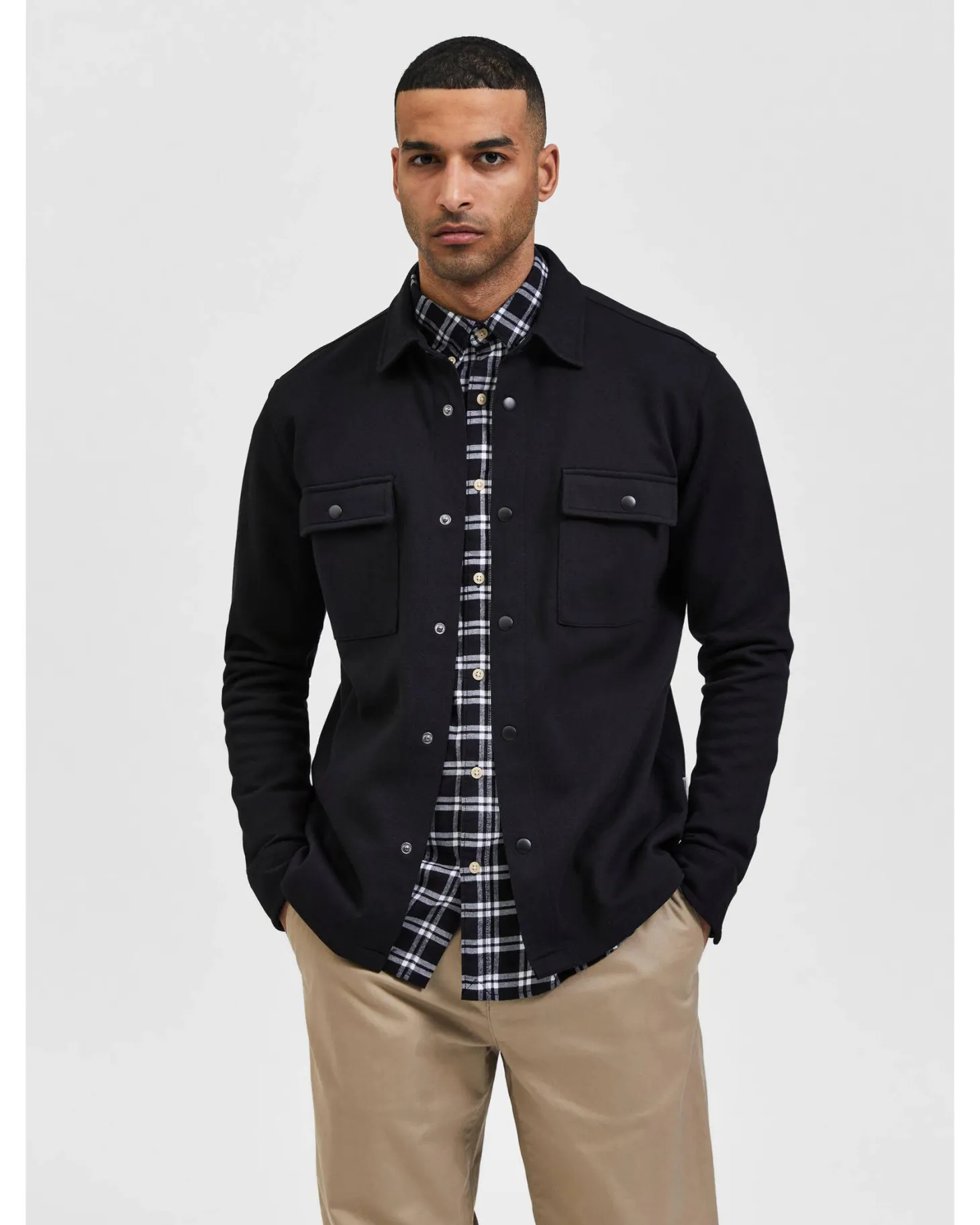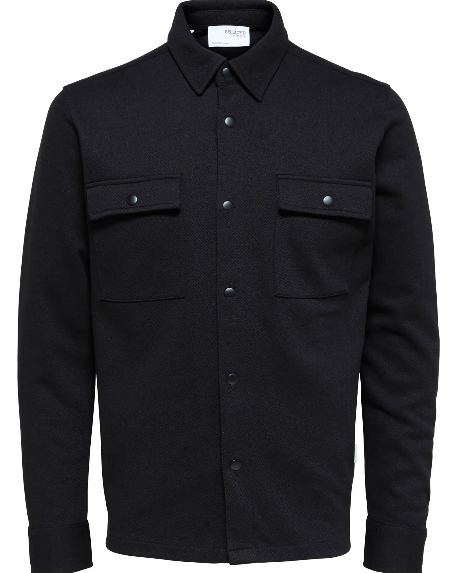 Selected Homme präsentiert die Jackie Hemdjacke im super lässigen Look mit klassischem Umlegekragen und praktischen Druckknopfverschlüssen. Die feine Piqué-Struktur verleiht dem modischen Overshirt ein raffiniertes Finish.