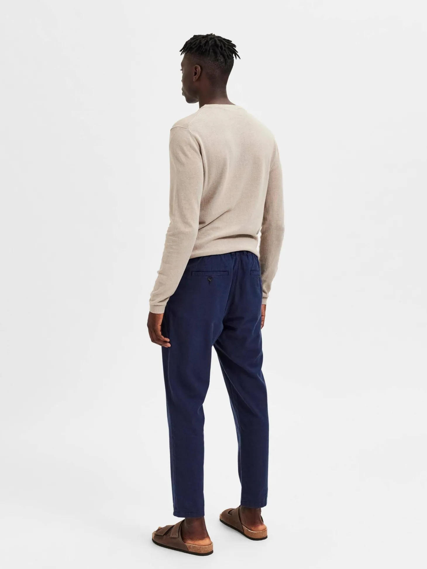 Diese Hose von Selected Homme besteht aus einem Baumwoll-Leinen-Gemisch und kommt mit einem mittelhohen Bund mit Kordelzug.