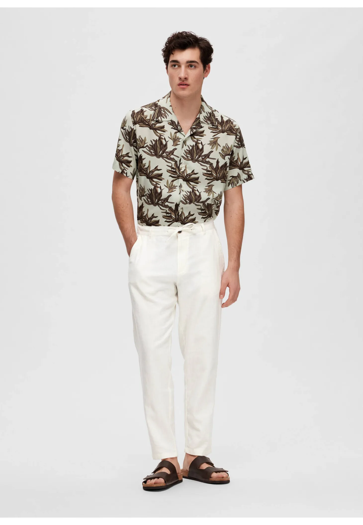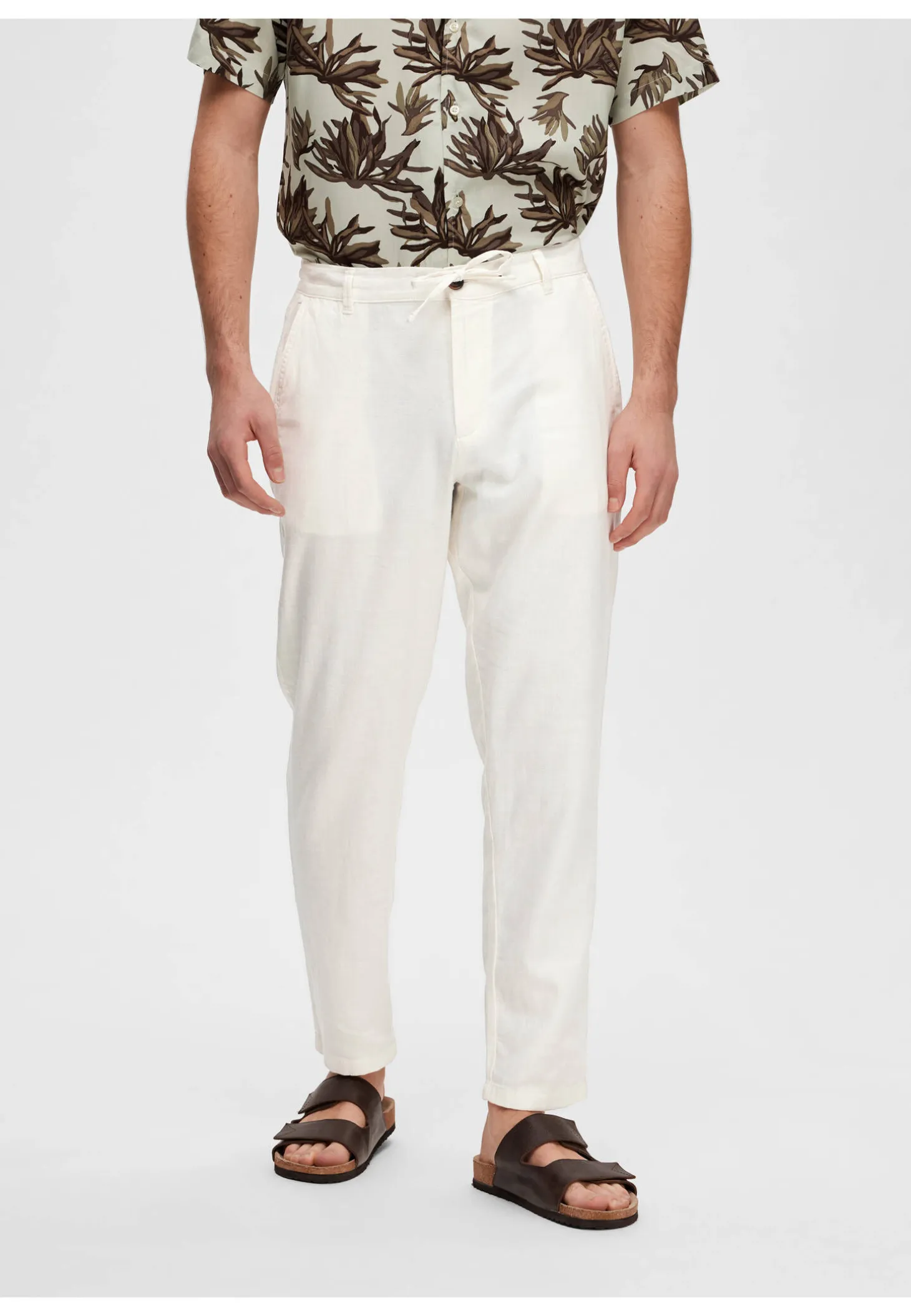 Diese Hose von Selected Homme besteht aus einem Baumwoll-Leinen-Gemisch und kommt mit einem mittelhohen Bund mit Kordelzug.