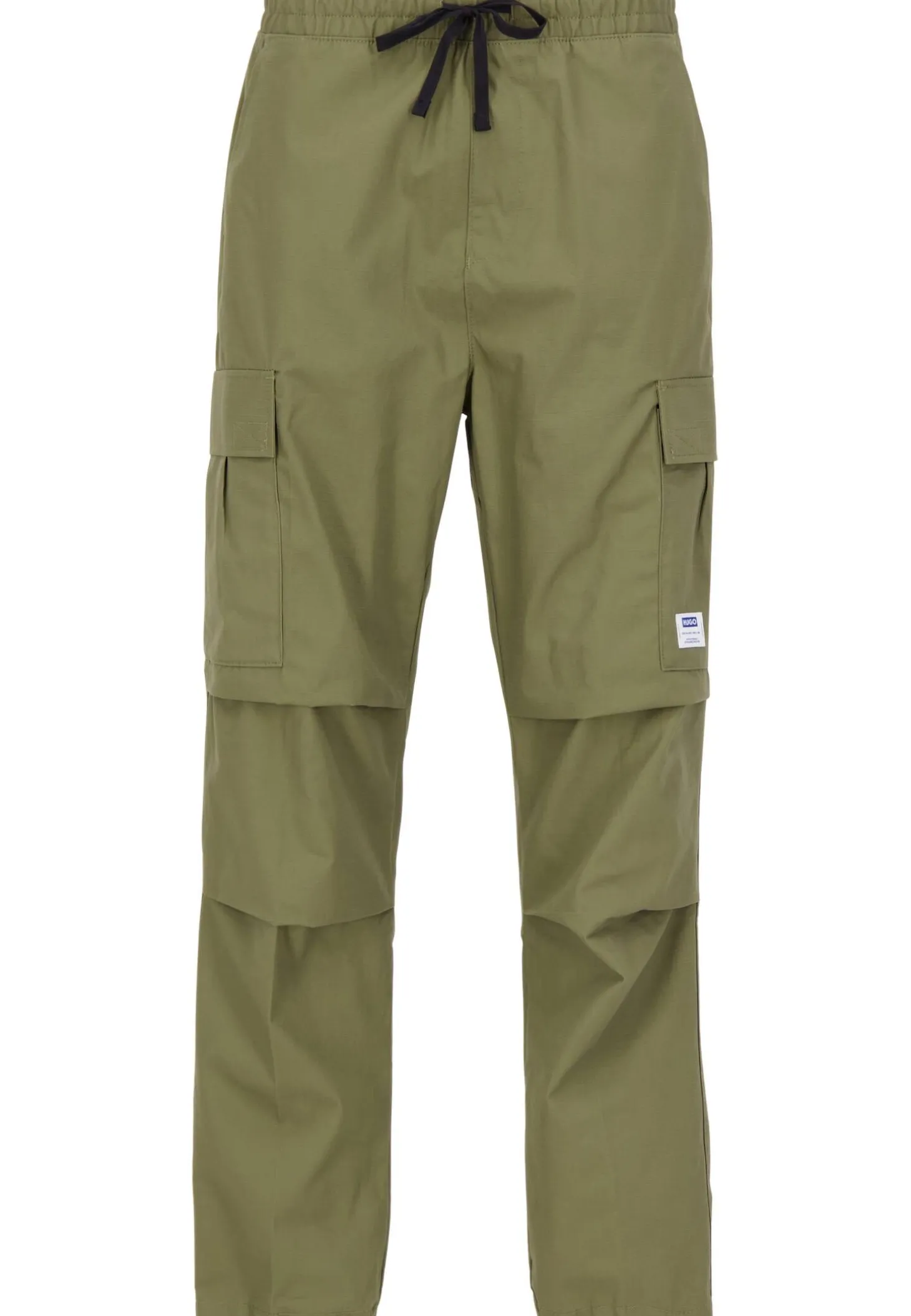 HUGO Hose aus strukturierter Baumwolle mit mittlerer Bundhöhe, geradem Beinverlauf, Cargotaschen und Logo-Detail.