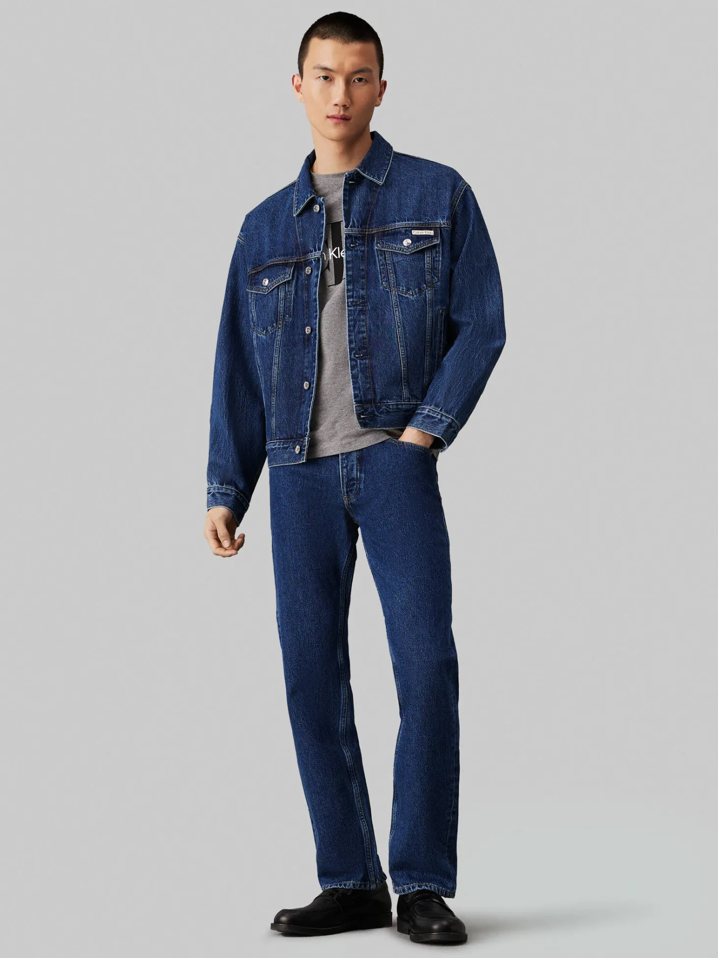 - Metallelemente und Leder-Badge mit Calvin Klein Logo
