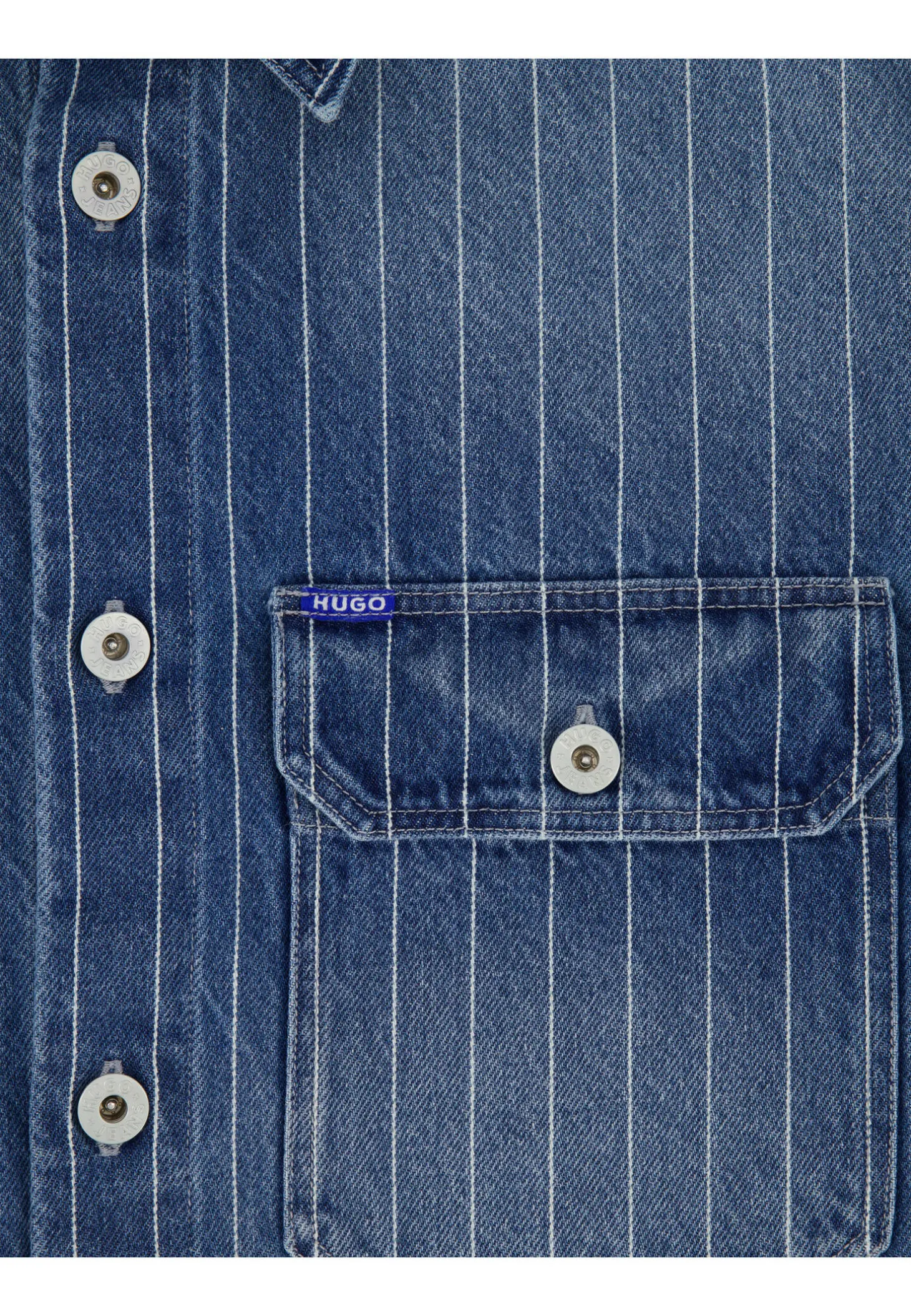 Das HUGO Denimhemd Ebolt setzt mit Oversize-Passform und Nadelstreifen ein modernes Casual-Statement – ideal kombiniert mit der passenden Jeans für einen lässig-stylischen Look.