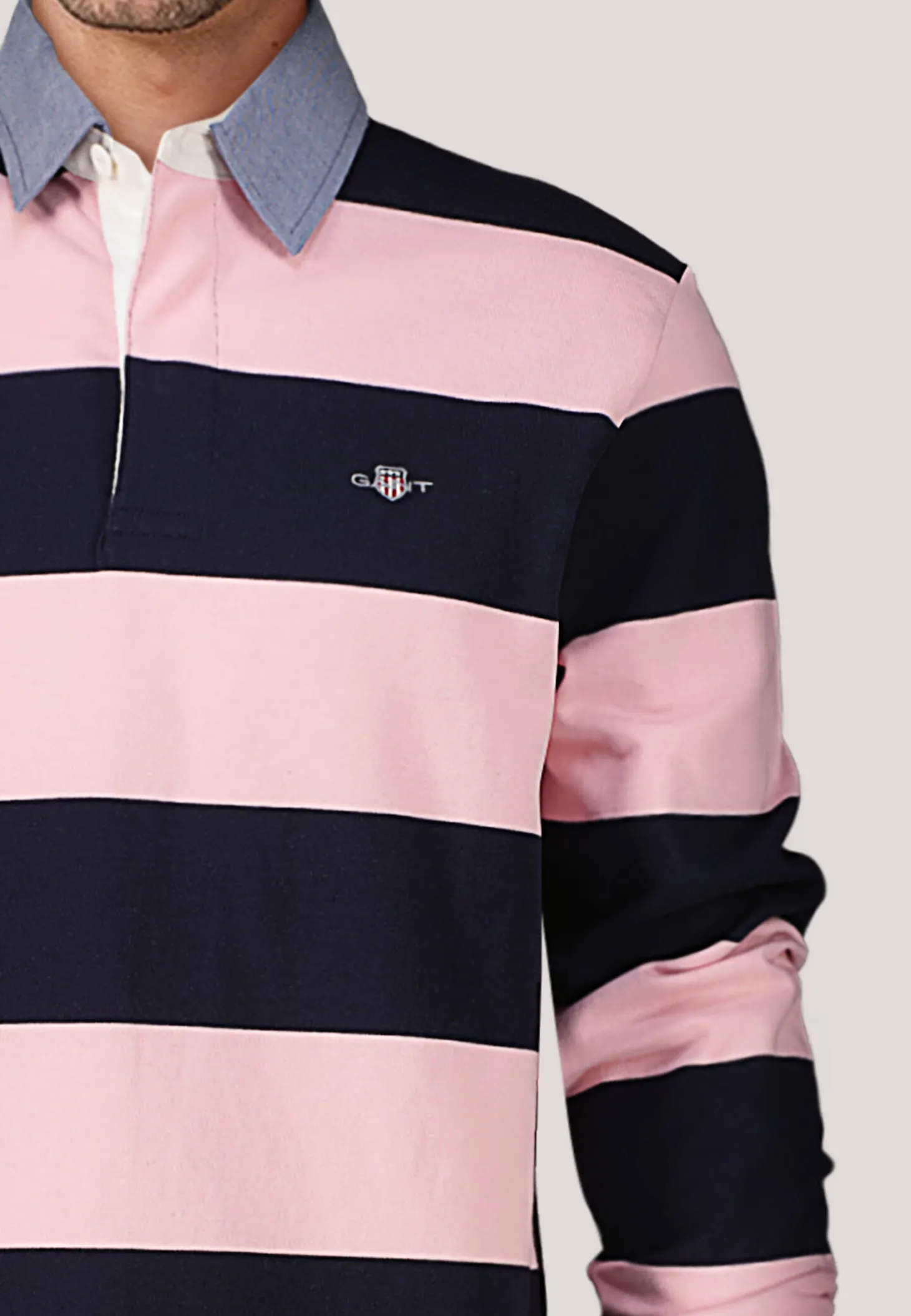 - Kontrastfarbener Chambray-Kragen