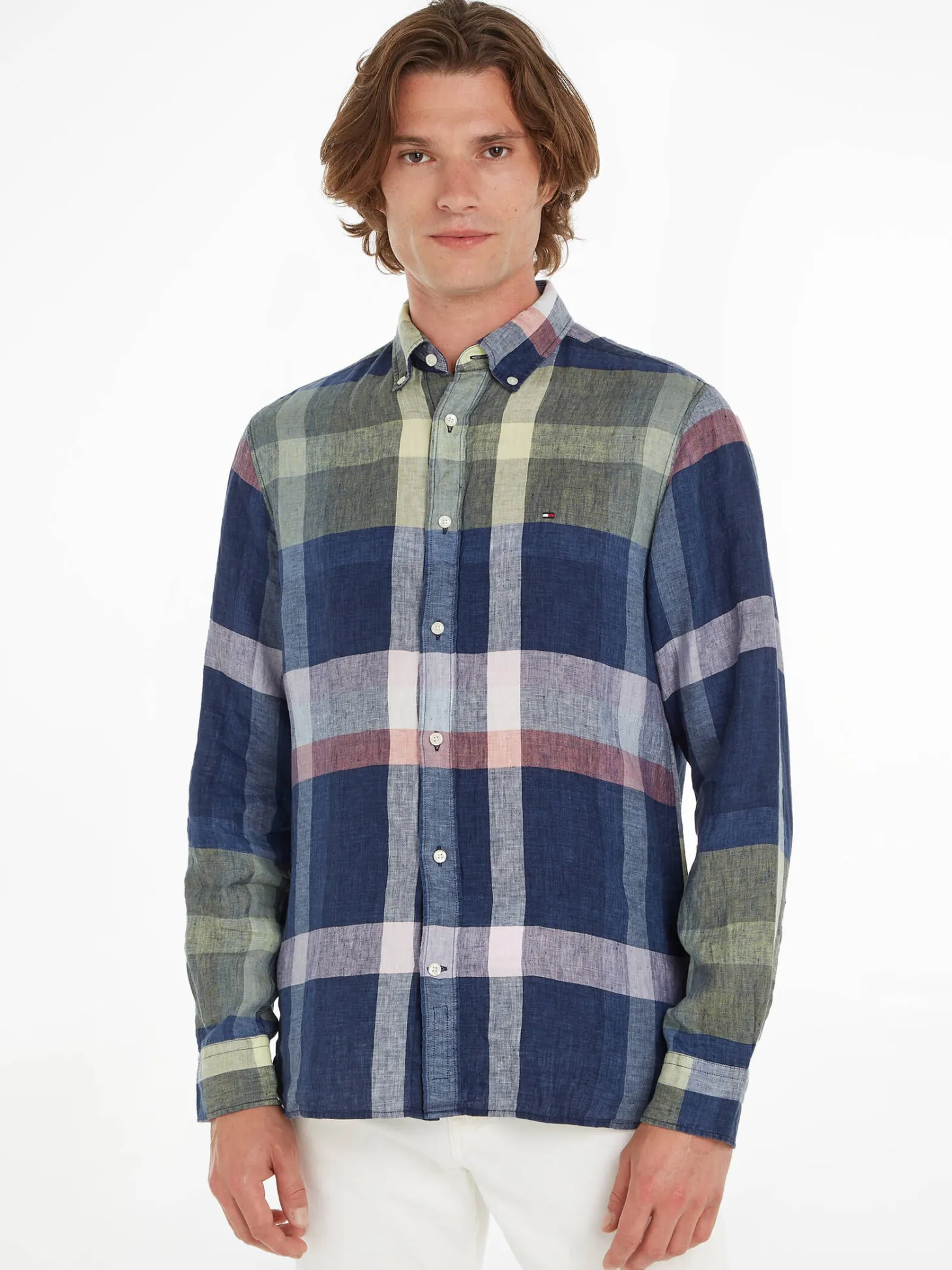 Langärmeliges, leichtes Leinenhemd von Tommy Hilfiger mit harmonischem Multi Check-Muster.