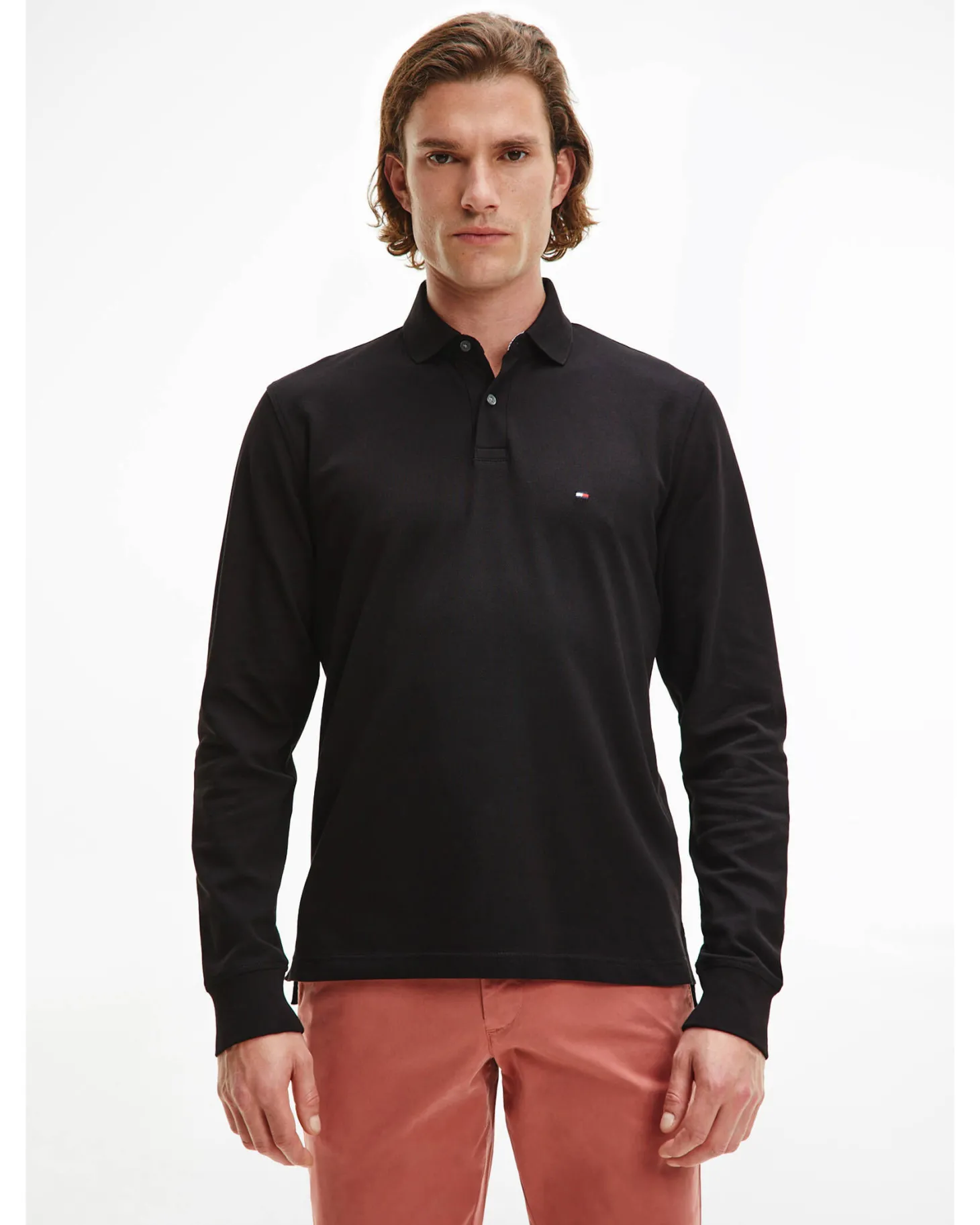 - Klassischer Polokragen mit kurzer Knopfleiste