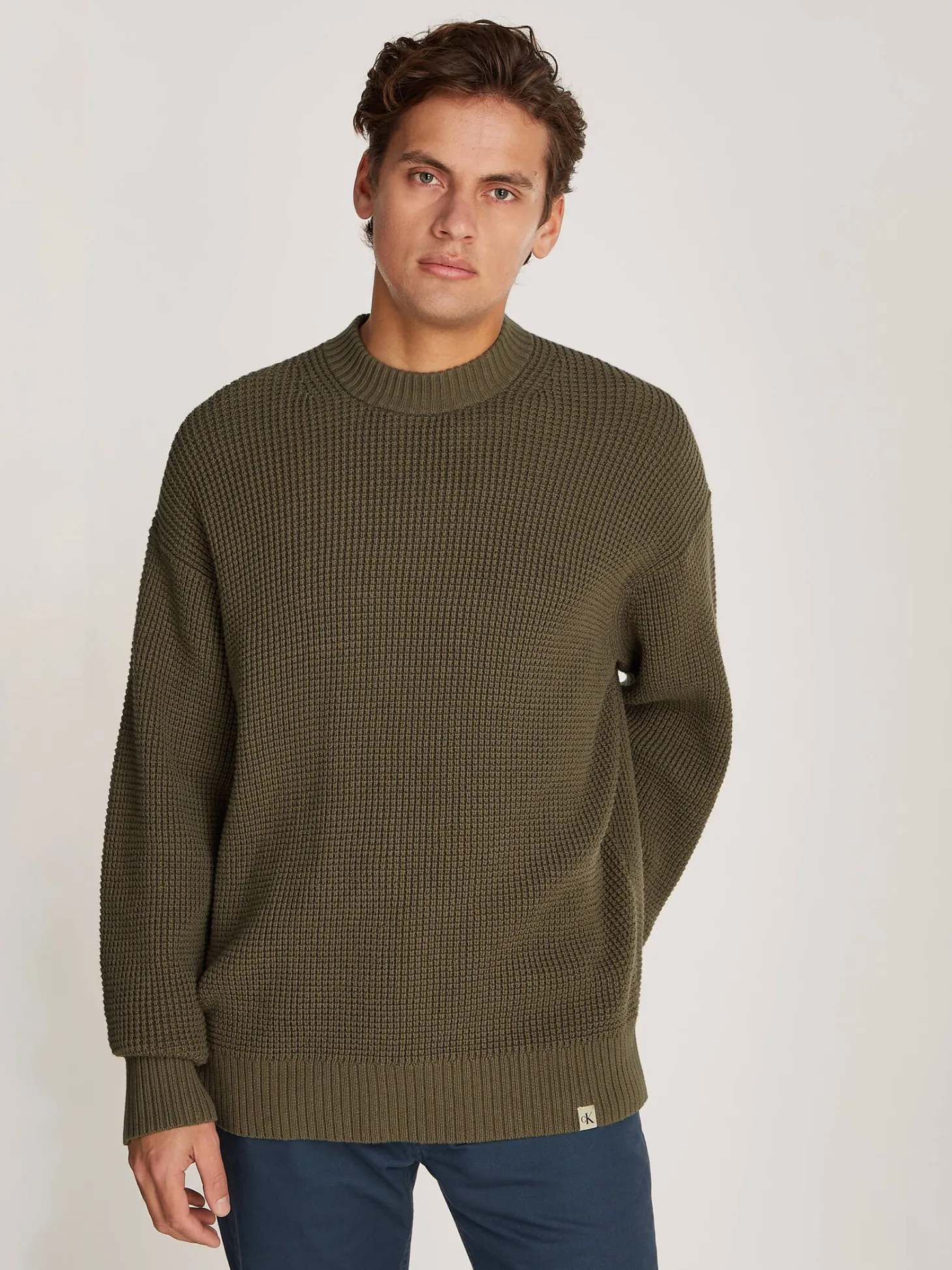 Dieser Pullover von Calvin Klein Jeans besticht durch sein schlichtes Design und eine hochwertige Baumwollmischung. Die gerippten Abschlüsse an Ärmeln und Saum sorgen für eine bequeme Passform und klassischen Stil.