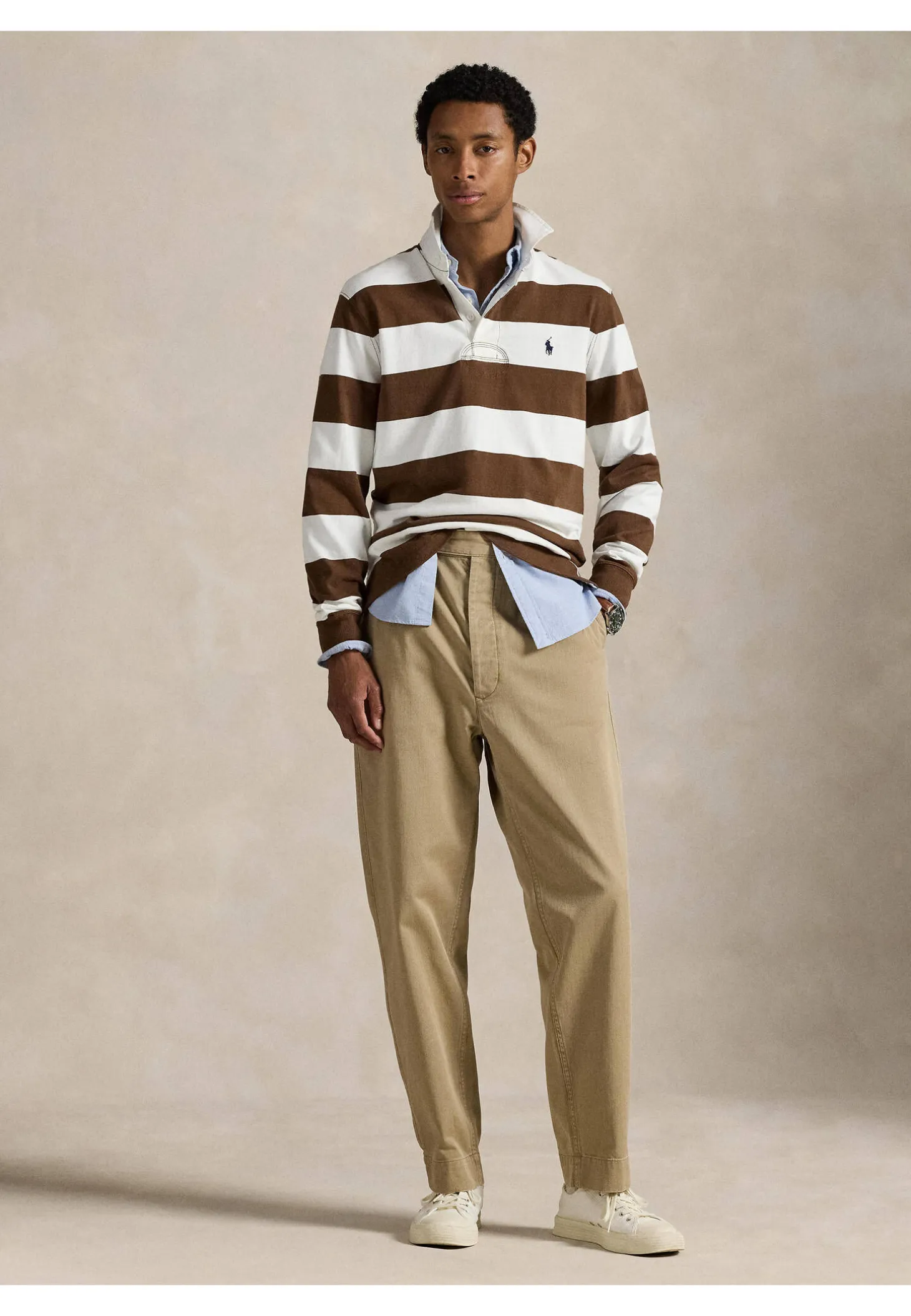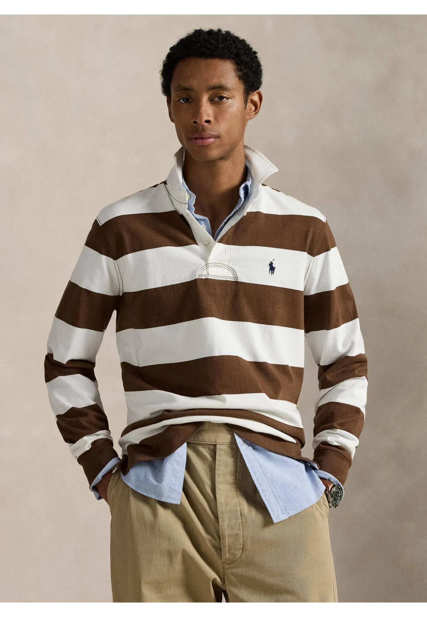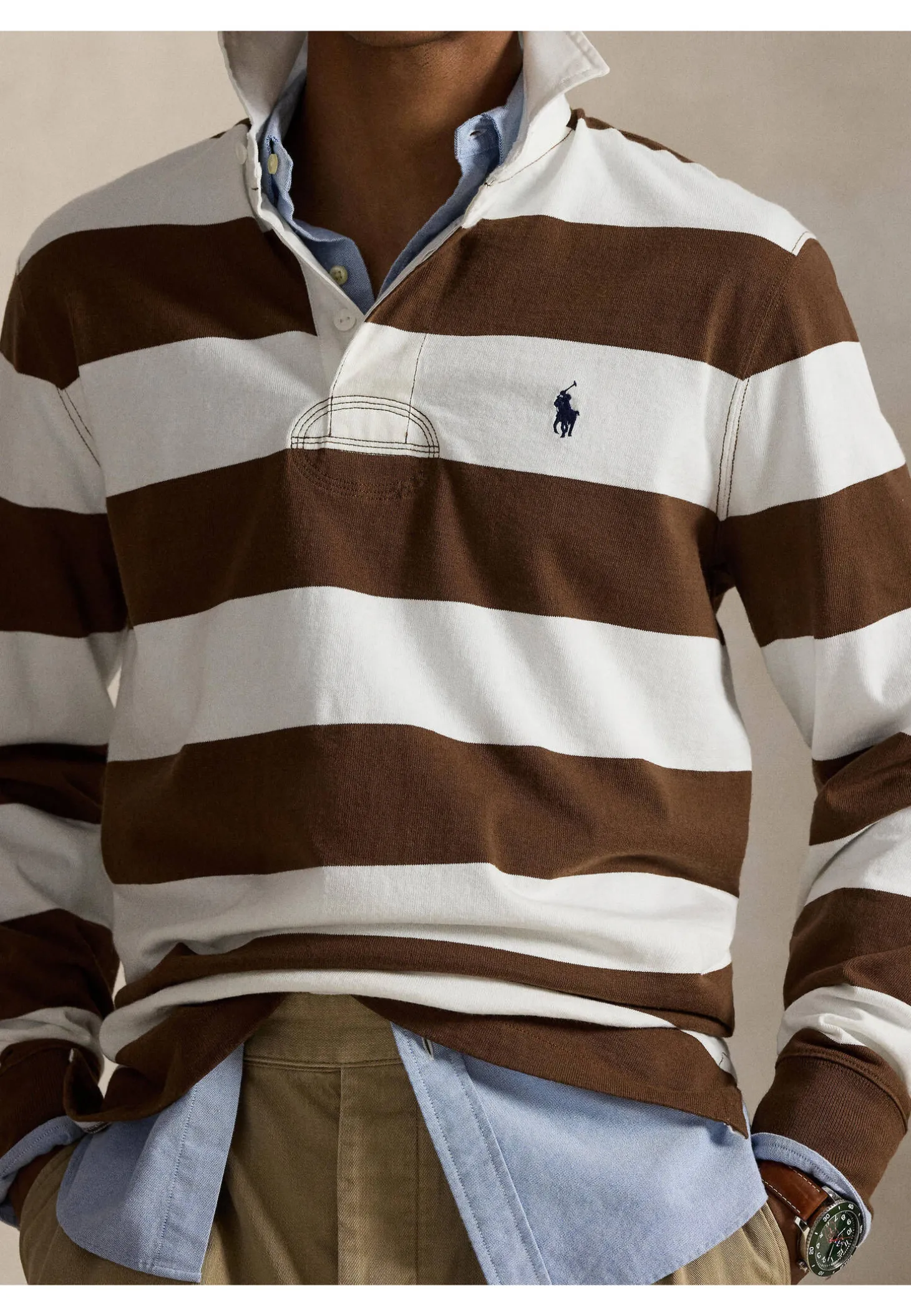 - Charakteristisches gesticktes Pony links auf der Brust