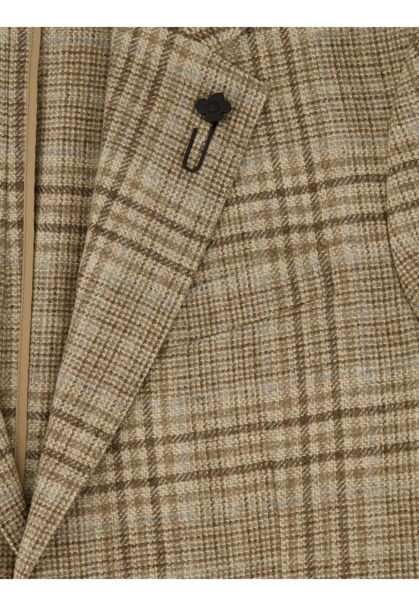 - Revers-Kragen mit umstickten Knopfloch und charakteristischer Blumenklammer