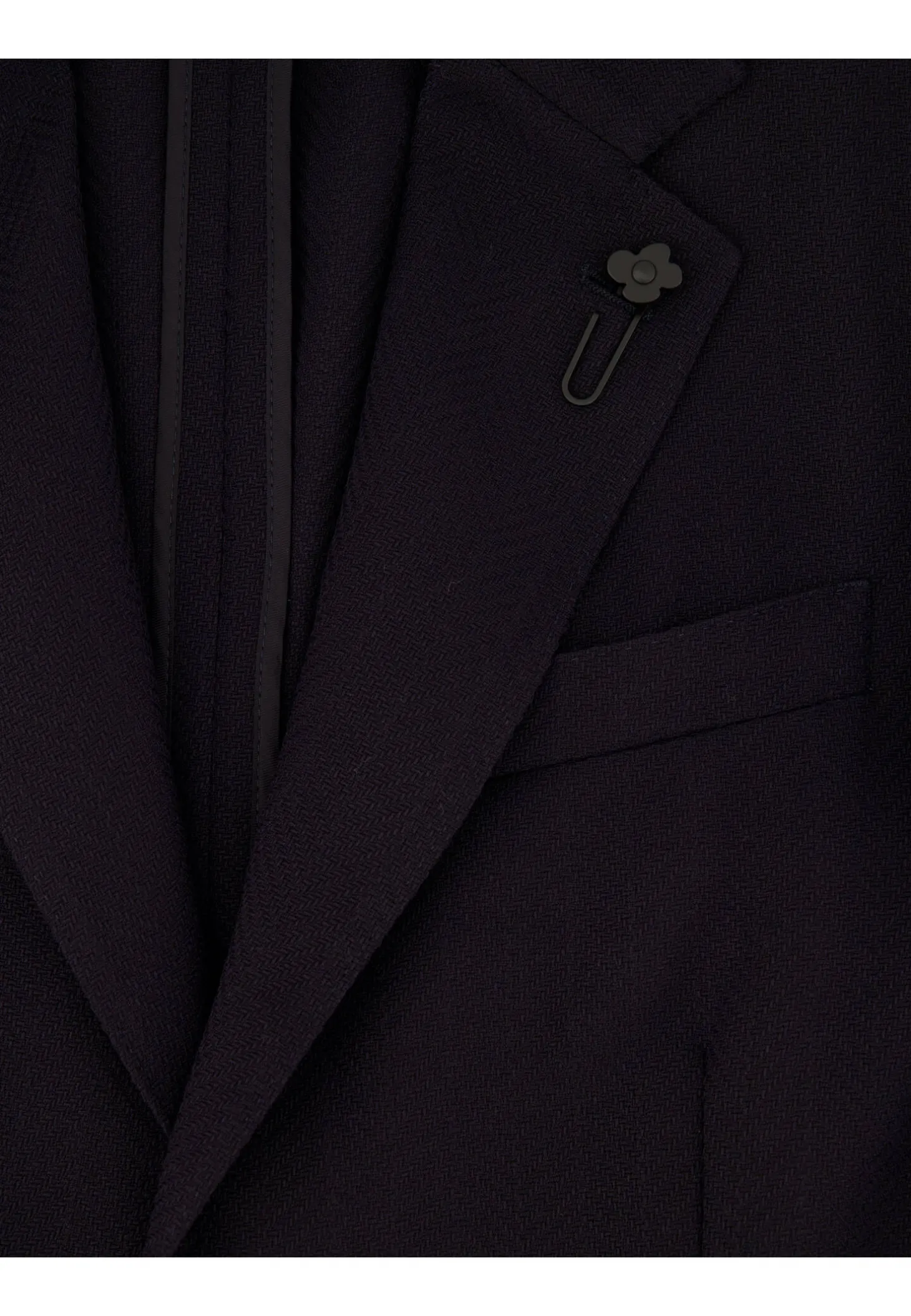 - Revers-Kragen mit umstickten Knopfloch und charakteristischer Blumenklammer