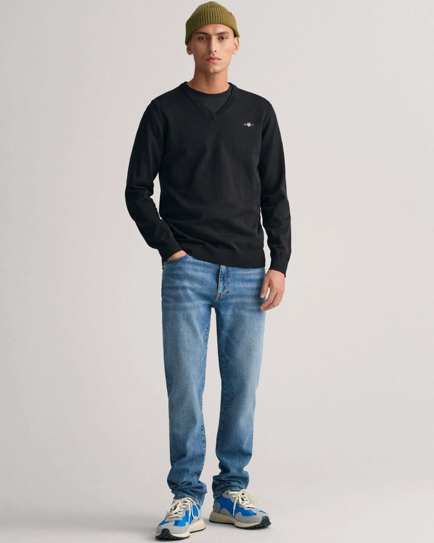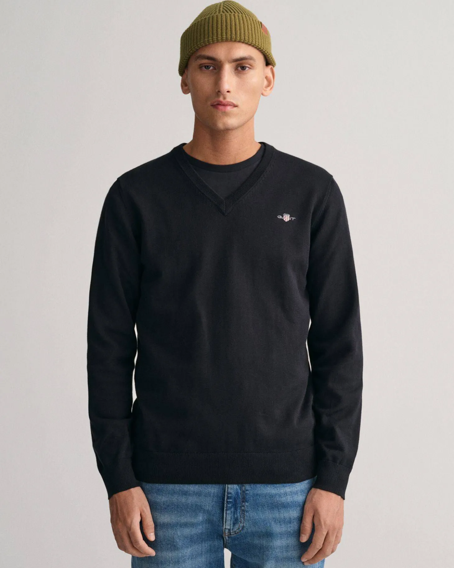 Klassischer Baumwollpullover von Gant mit V-Ausschnitt.