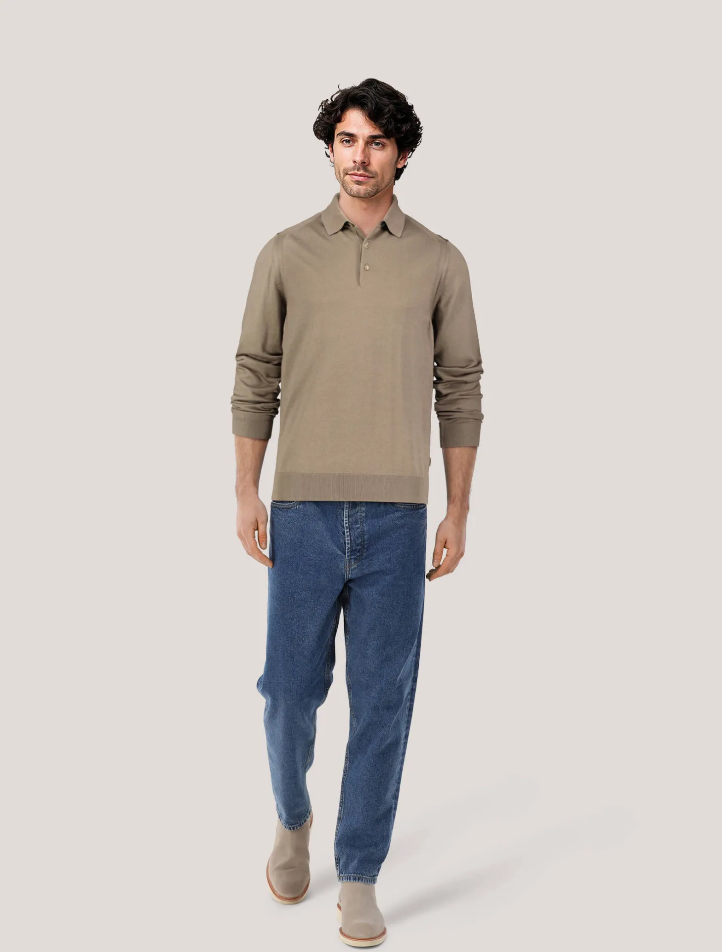 - Polokragen mit kurzer Knopfleiste