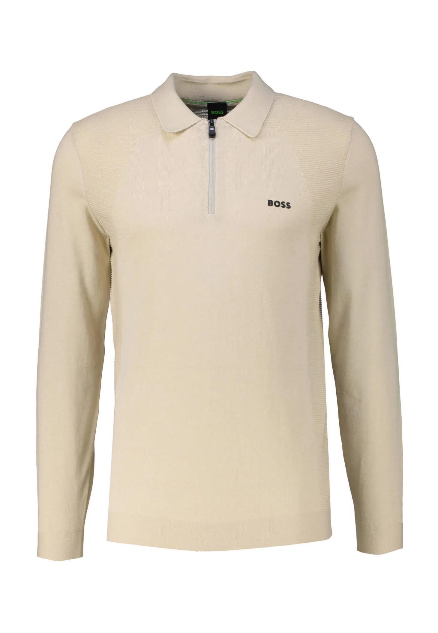 Der leichte Pullover von BOSS punktet mit filigraner Strickstruktur an den Seiten und Reißverschluss.