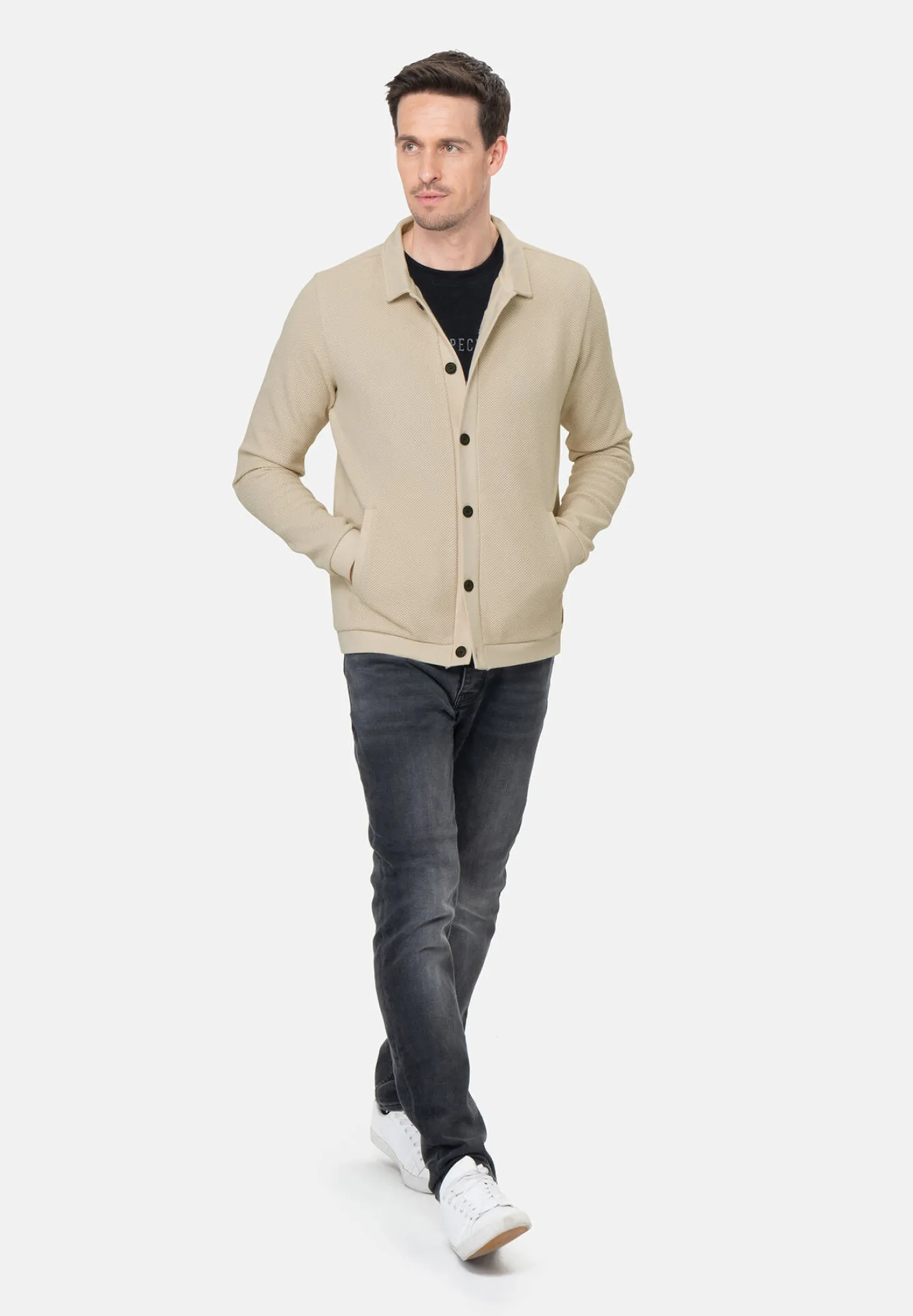 Die Sweatjacke MSW KLSteve von Key Largo kommt im modischen Hemdjacken-Stil mit Knopfleiste und Umlegekragen.