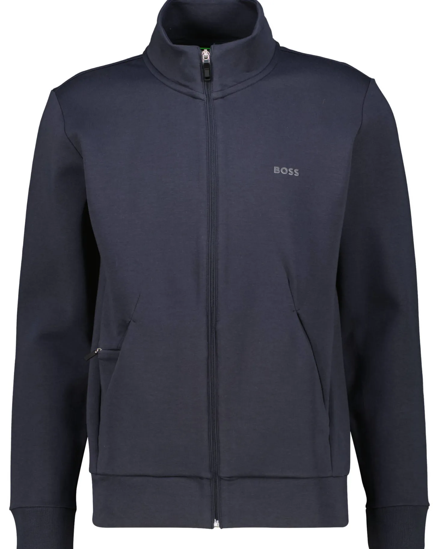 Skaz ist eine klassische Sweatjacke von BOSS mit Stehkragen und Reißverschluss.