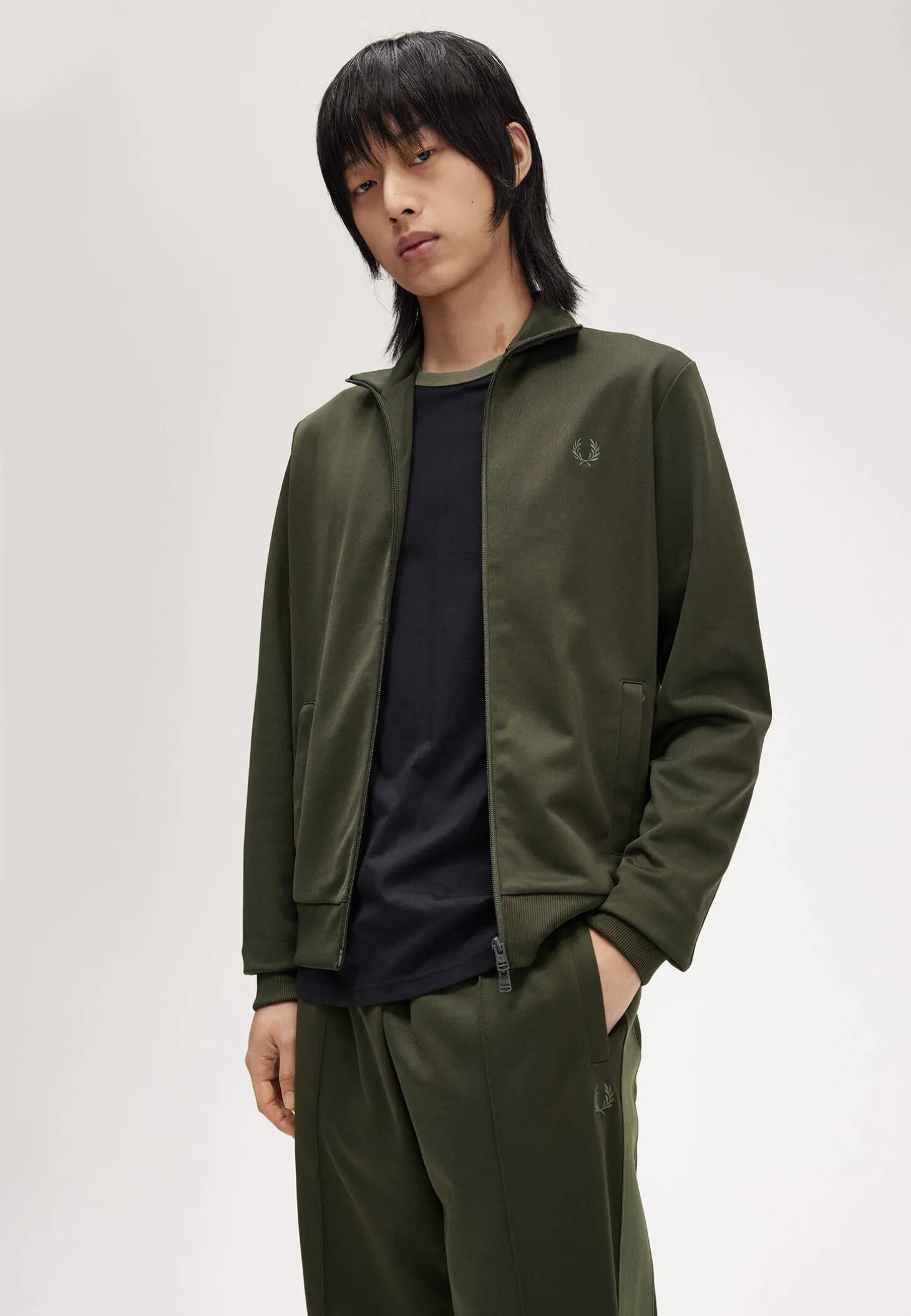 Die Sweatjacke von Fred Perry aus weichem Trikotmaterial verfügt über einen durchgehenden Zwei-Wege-Reißverschluss sowie seitliche Eingrifftaschen und zeigt an der linken Vorderseite den charakteristischen, aufgestickten Lorbeerkranz.