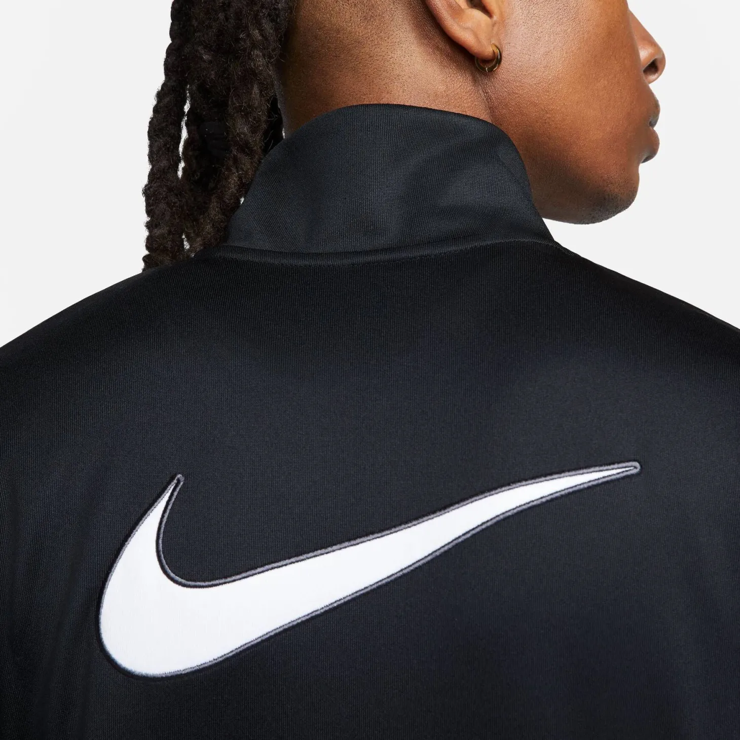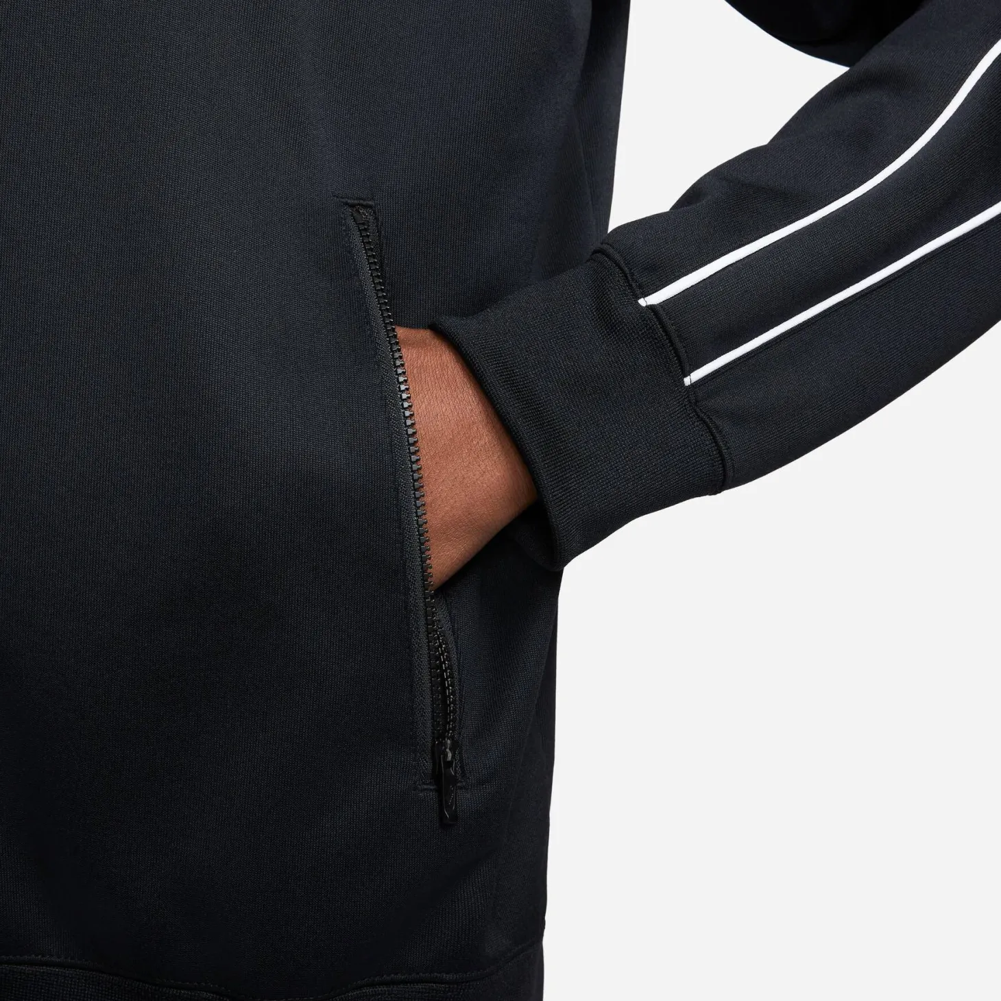 Klassische Tracktop Sweatjacke von Nike Sportswear mit kontrastfarbenen Paspeln entlang der Ärmel und Schultern.