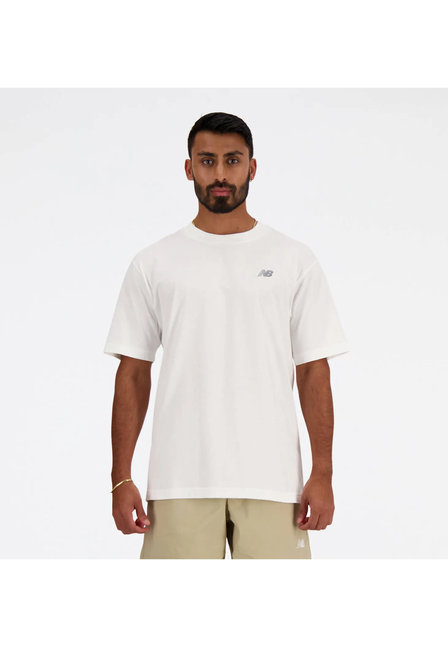 Klassisches T-Shirt von new balance mit kleinem, gesticktem Logo an der linken Brustseite.