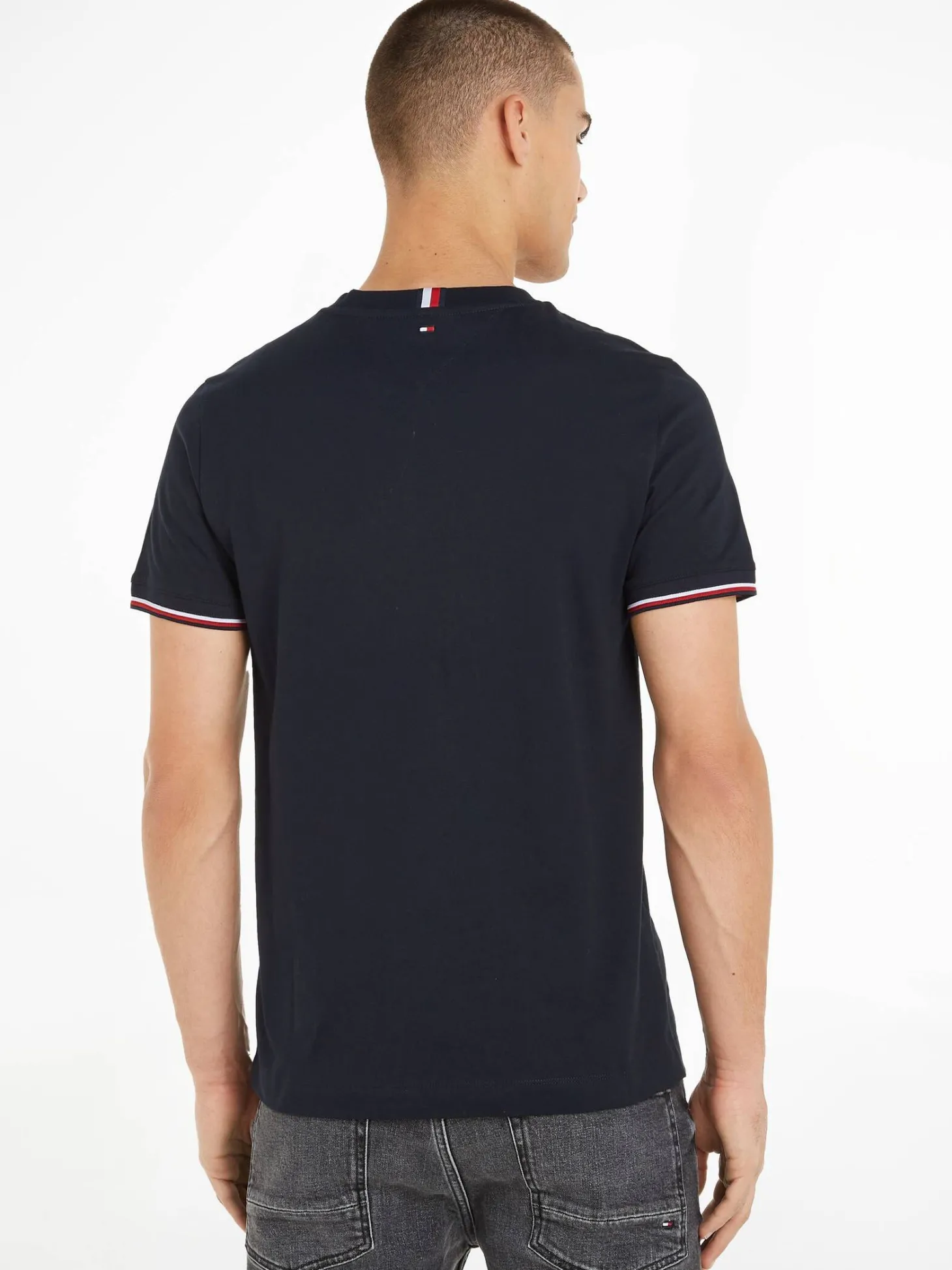 Schmal geschnittenes Tommy Logo Tipped T-Shirt von Tommy Jeans mit gestreiften Ärmelbündchen.