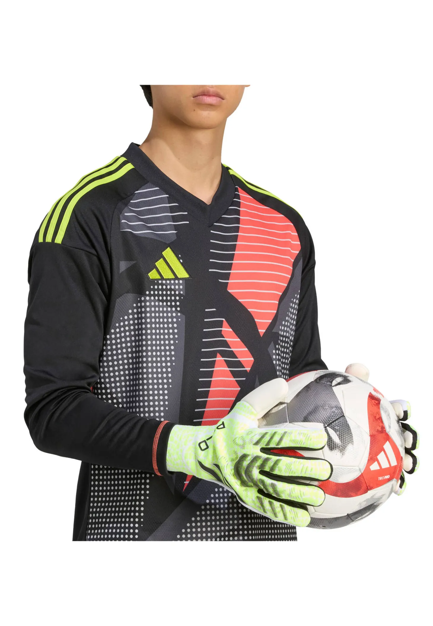 Die adidas Predator Pro Torwarthandschuhe bieten dank griffiger URG 2.0 Latex-Handflächen, engem, negativem Fingerschnitt und einem flexiblen, gewirkten Handrücken mit Silikon-Elementen optimale Kontrolle und Präzision in jeder Spielsituation.