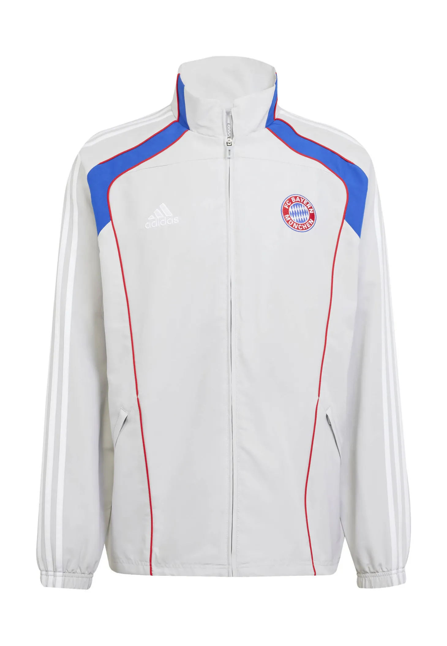 Diese Jacke kombiniert sportliche Funktionalität mit dem stolzen Logo des FC Bayern München und ist der perfekte Begleiter für dein Training, den Weg zum Stadion oder den Alltag.