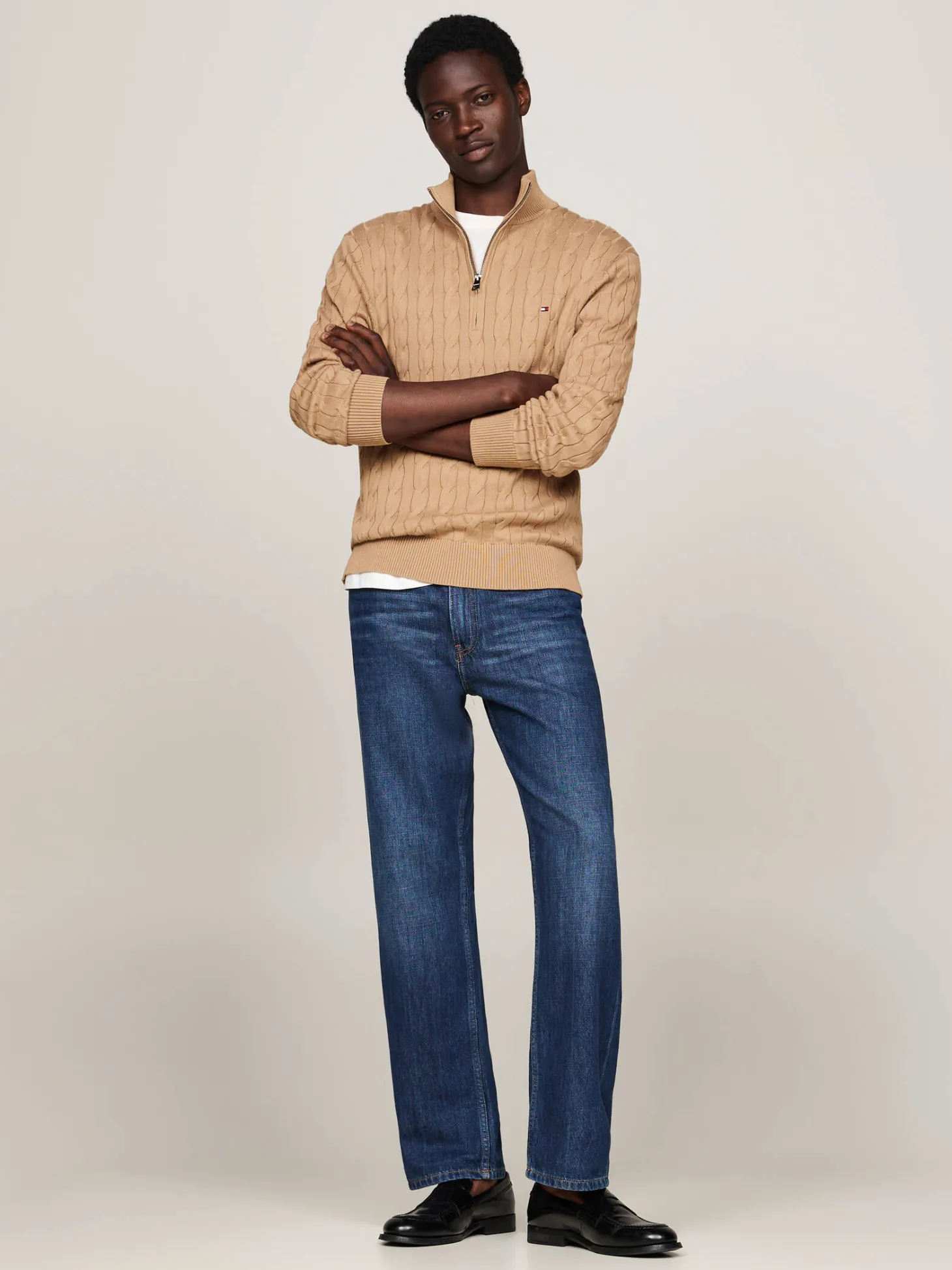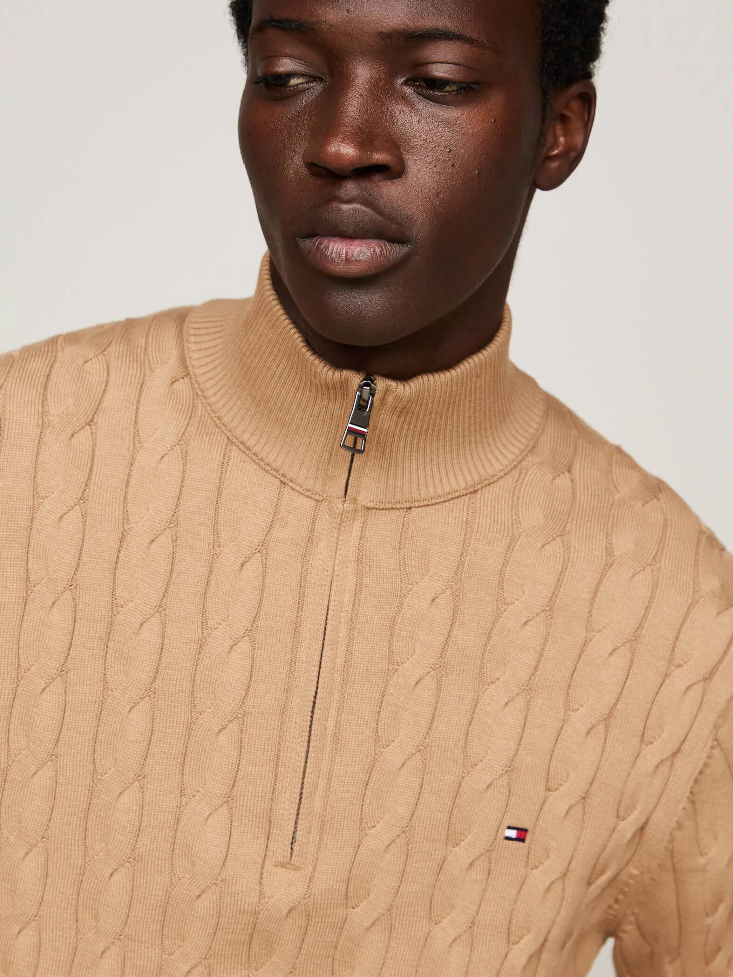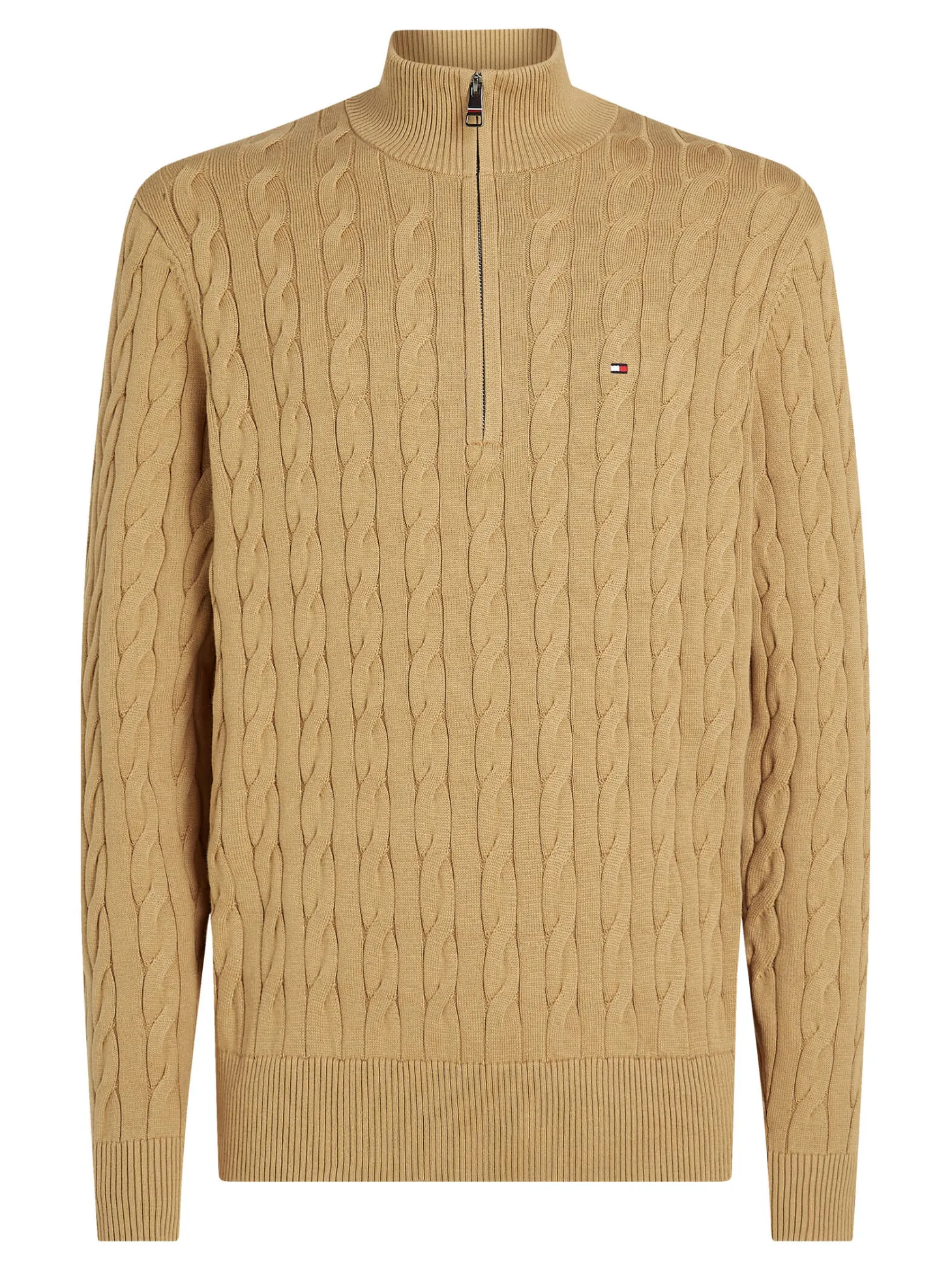 Klassischer Troyer von Tommy Hilfiger mit plastischem Zopf-Rippenmuster und Reißverschluss.