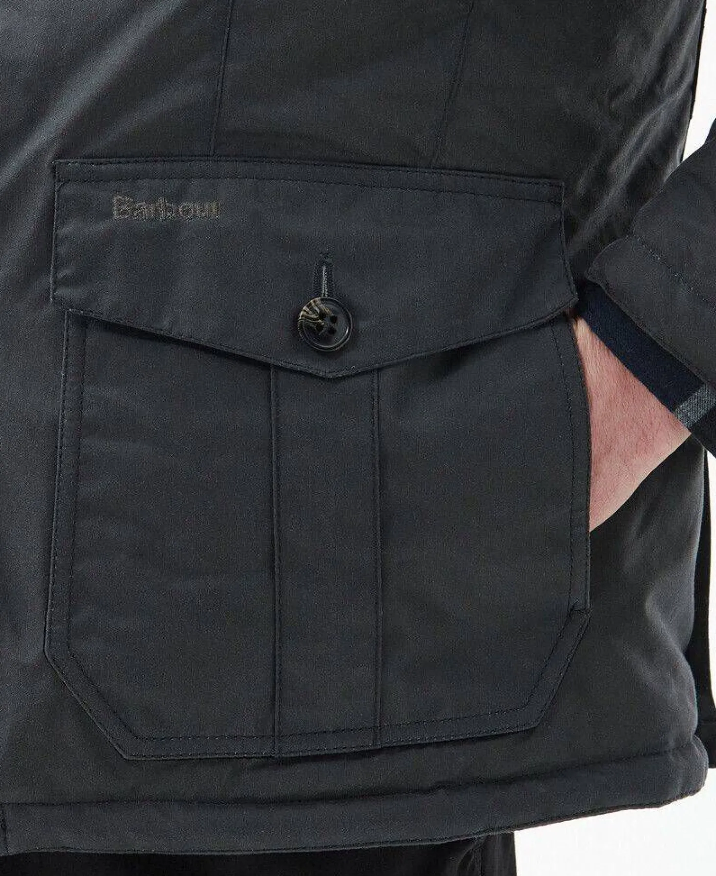 Barbour präsentiert die gewachste Jacke Winter Lutz in einem ansprechenden, zeitlosen Design. Der Umlegekragen lässt sich dank einer Sturmklappe mit Schnalle auch als Stehkragen tragen. Die praktischen Vordertaschen mit Knopfverschluss bieten dir genug Platz für deine Essentials.