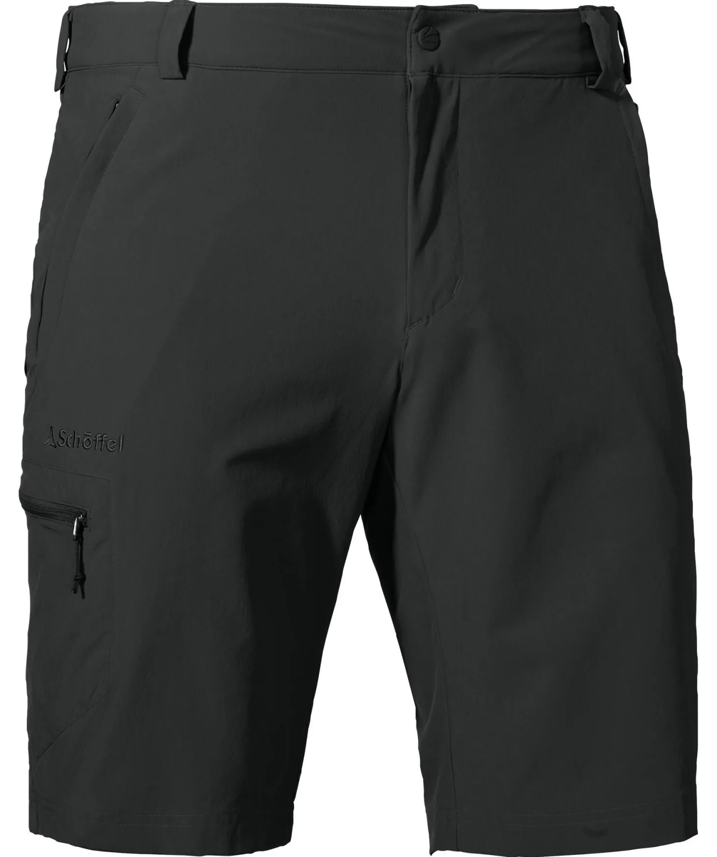 - eine Reißverschlusstasche mit gesticktem Logo am rechten Oberschenkel