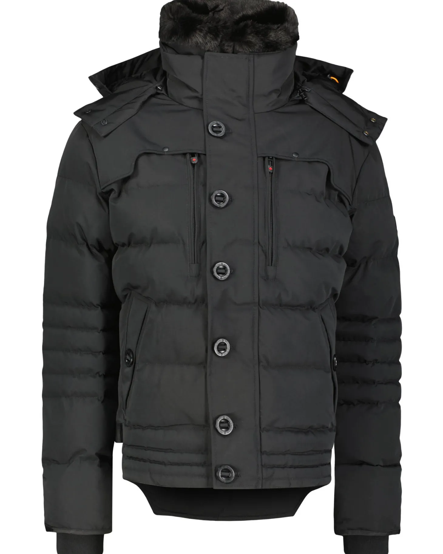 - Abnehmbare Kapuze mit Kordelzug und Druckknopfverschluss