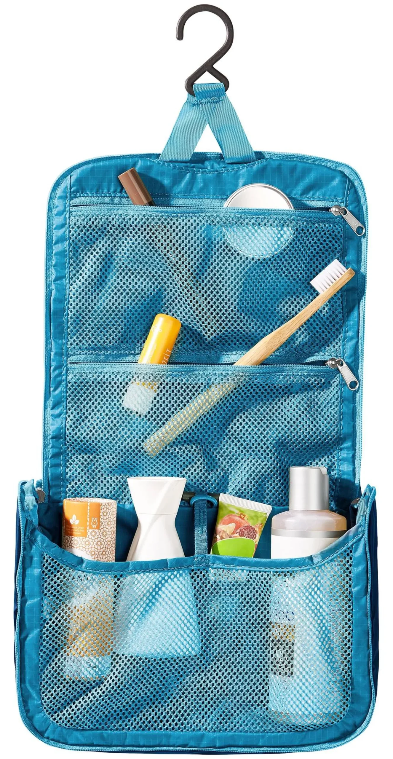 - Leicht verstaubarer Haken zum Aufhängen und Befestigungsschlaufe