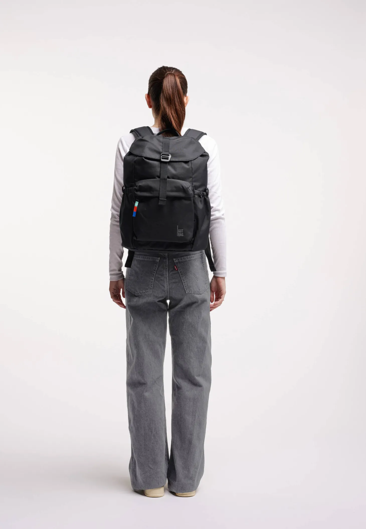 - Zwei elastische Seitenfächer für Flaschen