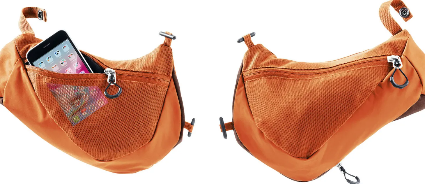- Zwei abnehmbare Reißverschluss-Hüftflossentaschen (3L)