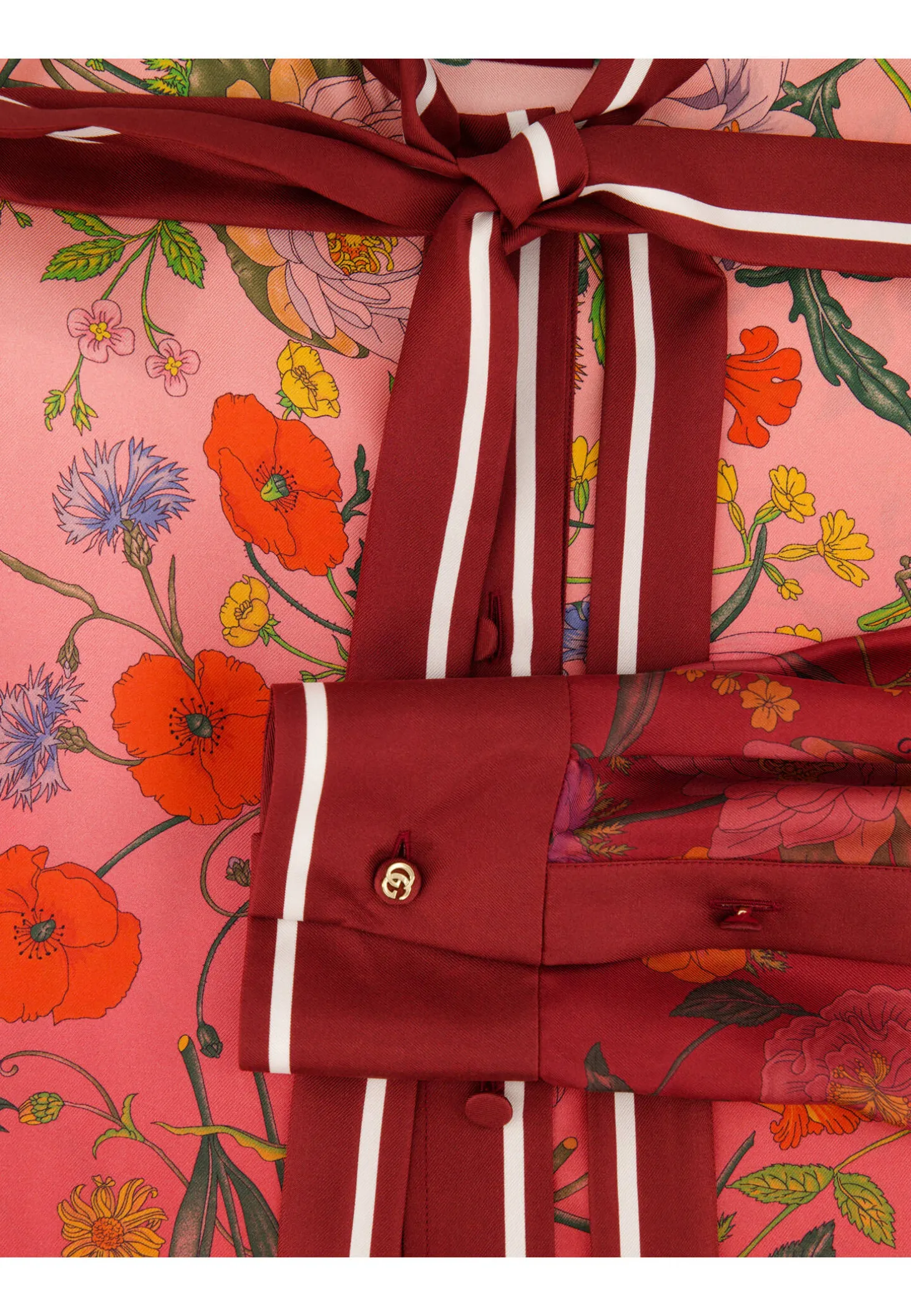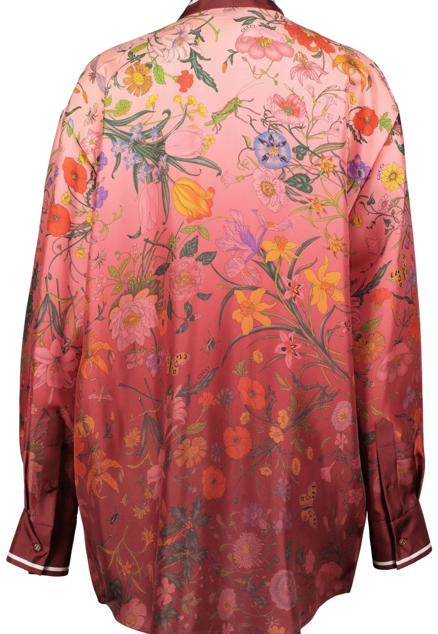 Die edle Langarmbluse von Gucci präsentiert sich in einem eleganten Farbverlauf und bringt den ikonischen Flora-Print der 1960er Jahre in frischer Optik zurück. Der luxuriöse Seidentwill und die romantischen Details machen sie zum stilvollen Statement-Piece für besondere Anlässe oder anspruchsvolle Everyday-Looks.