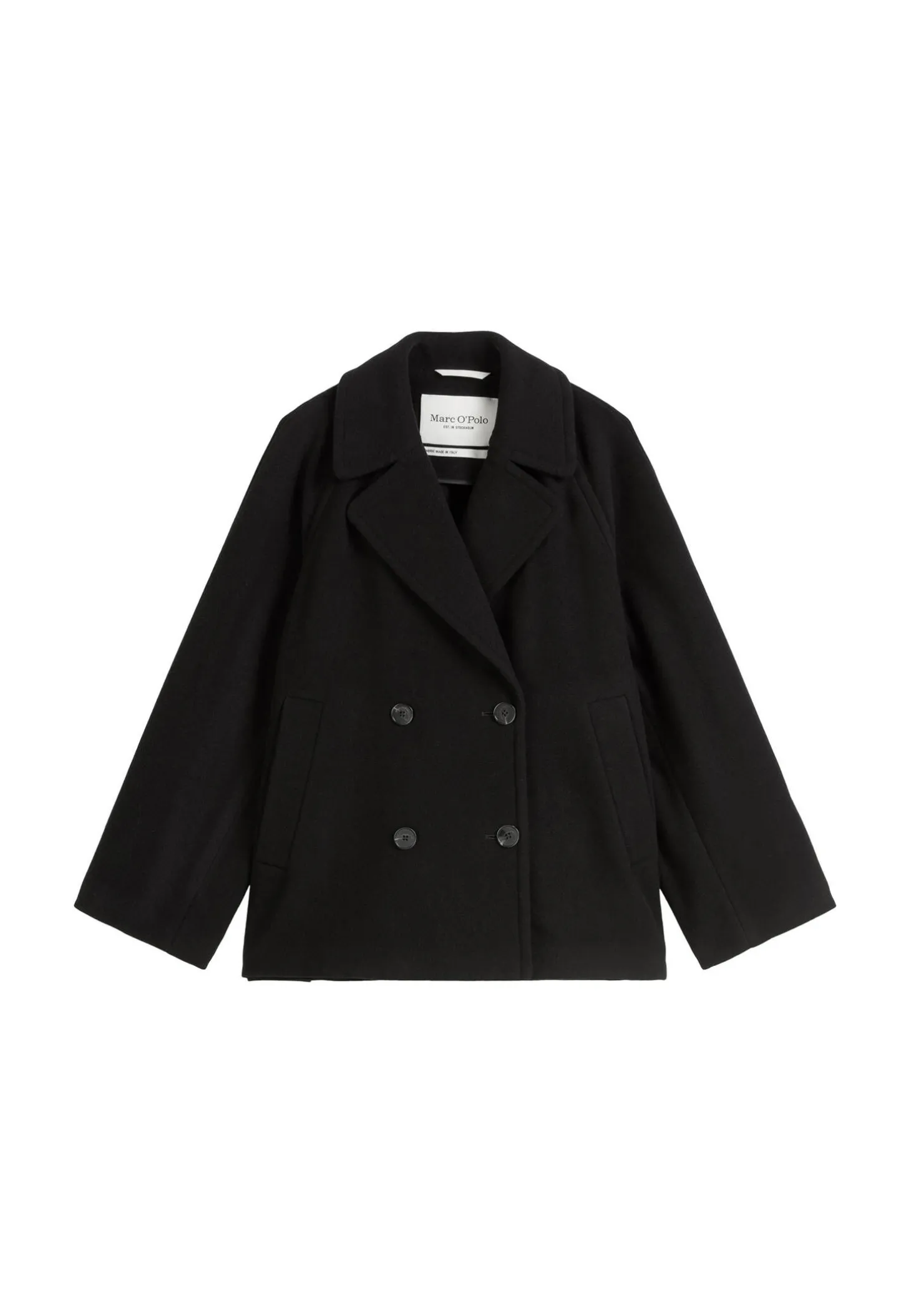 Die Marc O`Polo Jacke im Caban-Stil ist aus einem hochwertigen Wolle-Mix gefertigt und stellt eine elegante Alternative zur klassischen Steppjacke dar.