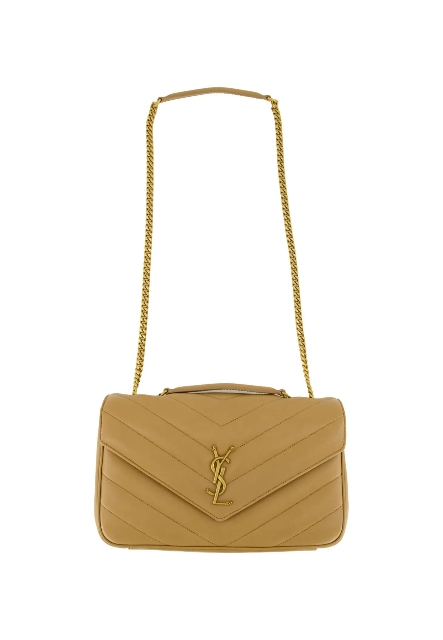 Die Loulou Tasche von Saint Laurent besticht durch edles Lammleder in charakteristischer Stepp-Optik und einem ikonischen Monogramm auf der Vorderseite, das dem Design eine prägnante Note verleiht. Der durchdachte Innenraum mit Hauptfach, Seitenfach, herausnehmbarem Portemonnaie und integriertem Taschenspiegel bietet funktionalen Komfort für den Alltag.