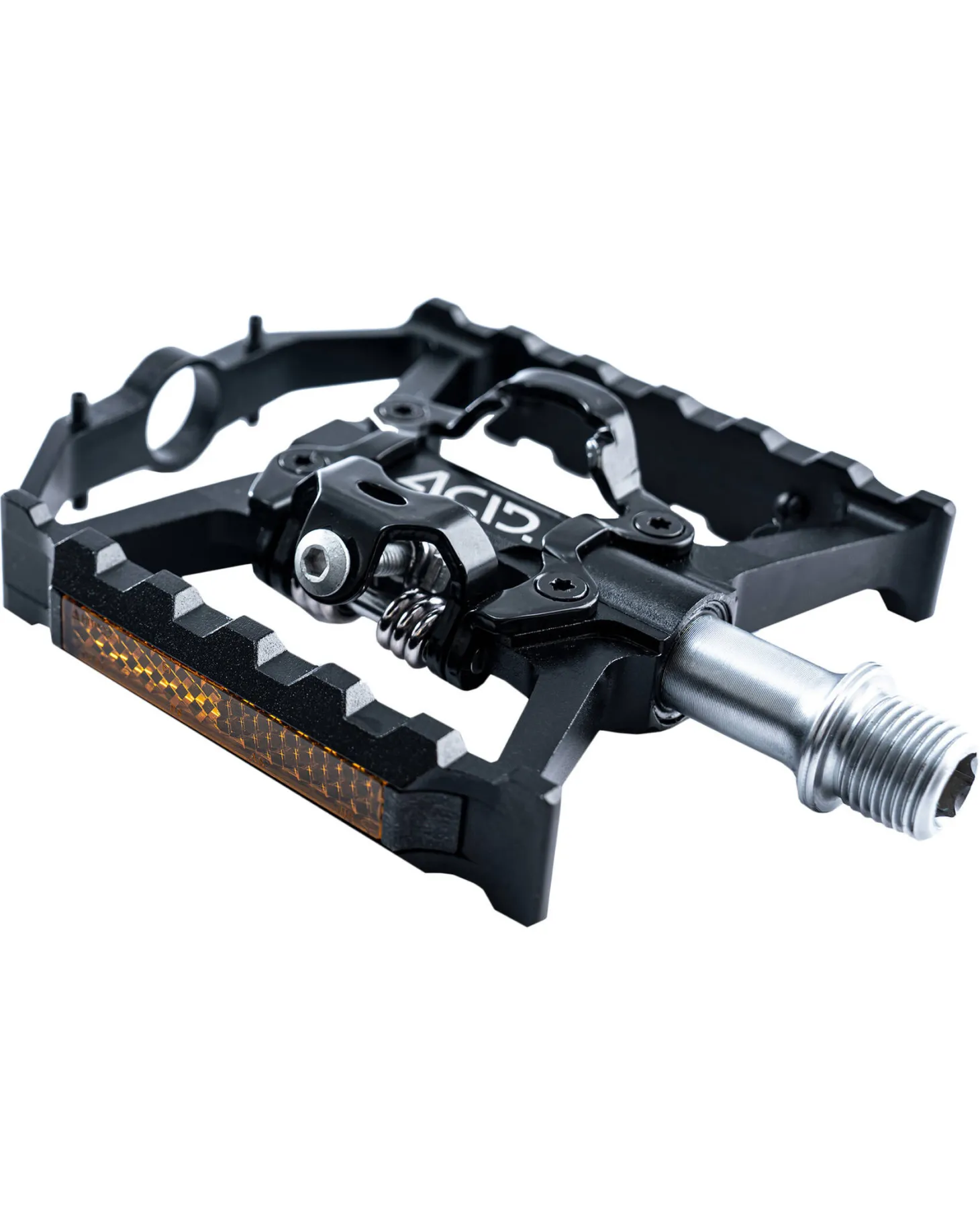 Die ACID Combo A4-IB Hybrid Pedale geben dir einen idealen Halt, auch wenn du es mal eilig hast. Integrierte, reflektierende Elementen sorgen für eine gute Sichtbarkeit, auch im Dunkeln.