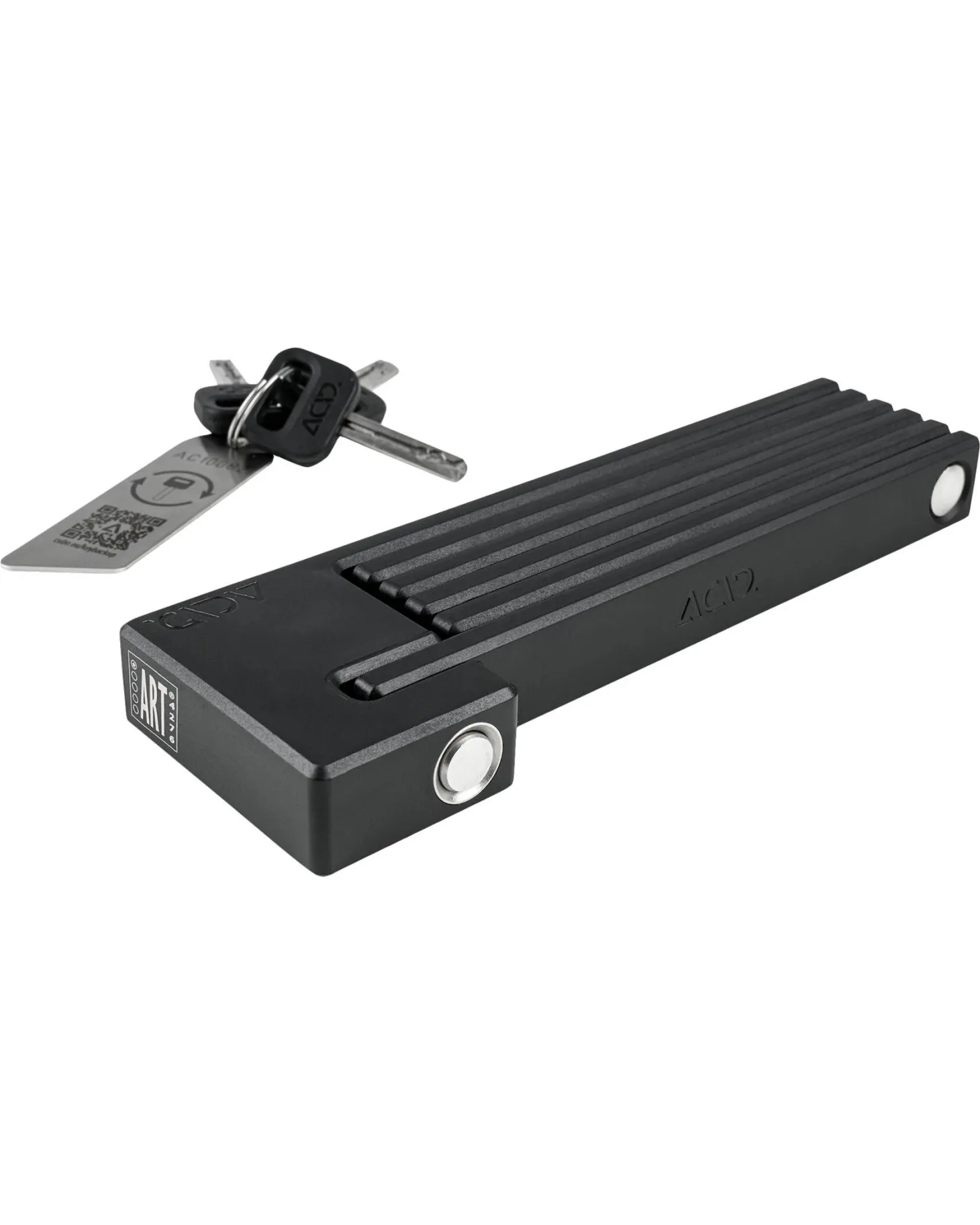 Das Acid Faltschloss Rigid 80 Pure überzeugt mit seiner Fertigung aus rostfreiem Hochleistungsstahl und solid gefederten Bolzen, die ein einfaches Handling garantieren. Das minimalistische und schmale Design macht das Schloss griffig und passend für fast jedes Fahrrad.