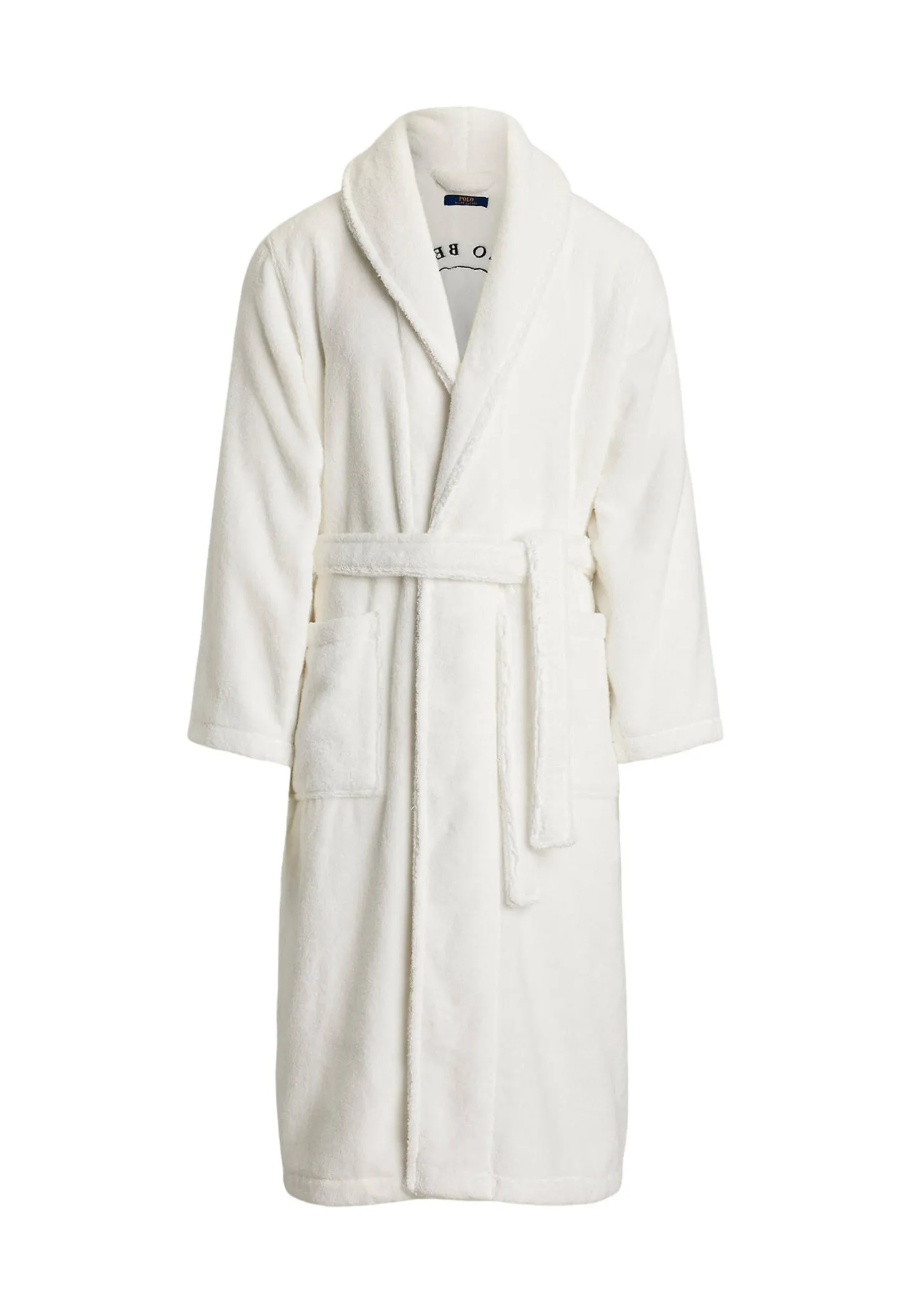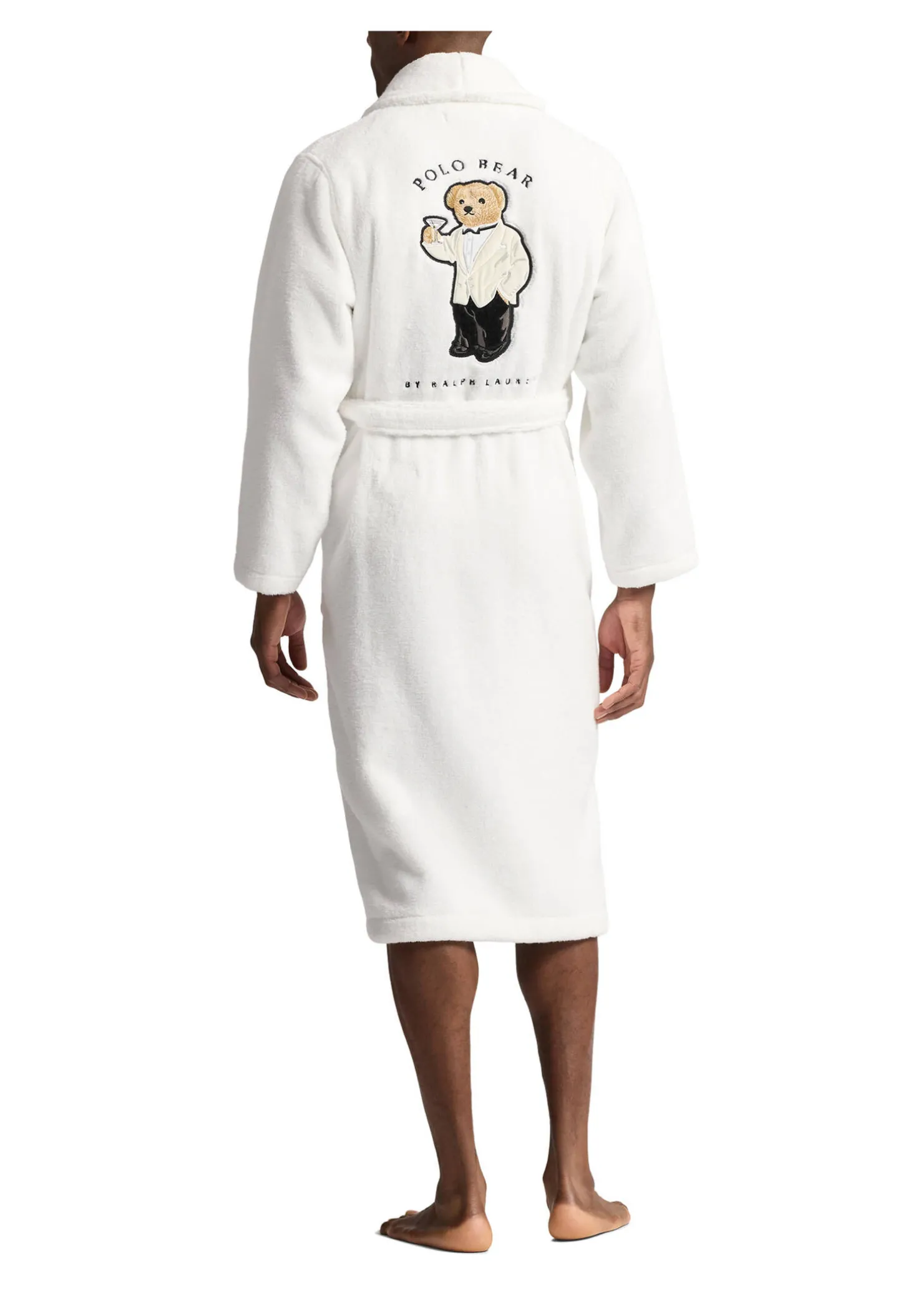 Nach Dusche, Bad und Sauna wird es super kuschelig mit dem Bademantel von Polo Ralph Lauren, der am Rücken mit dem Polo Bear in Feierlaune bestickt ist.