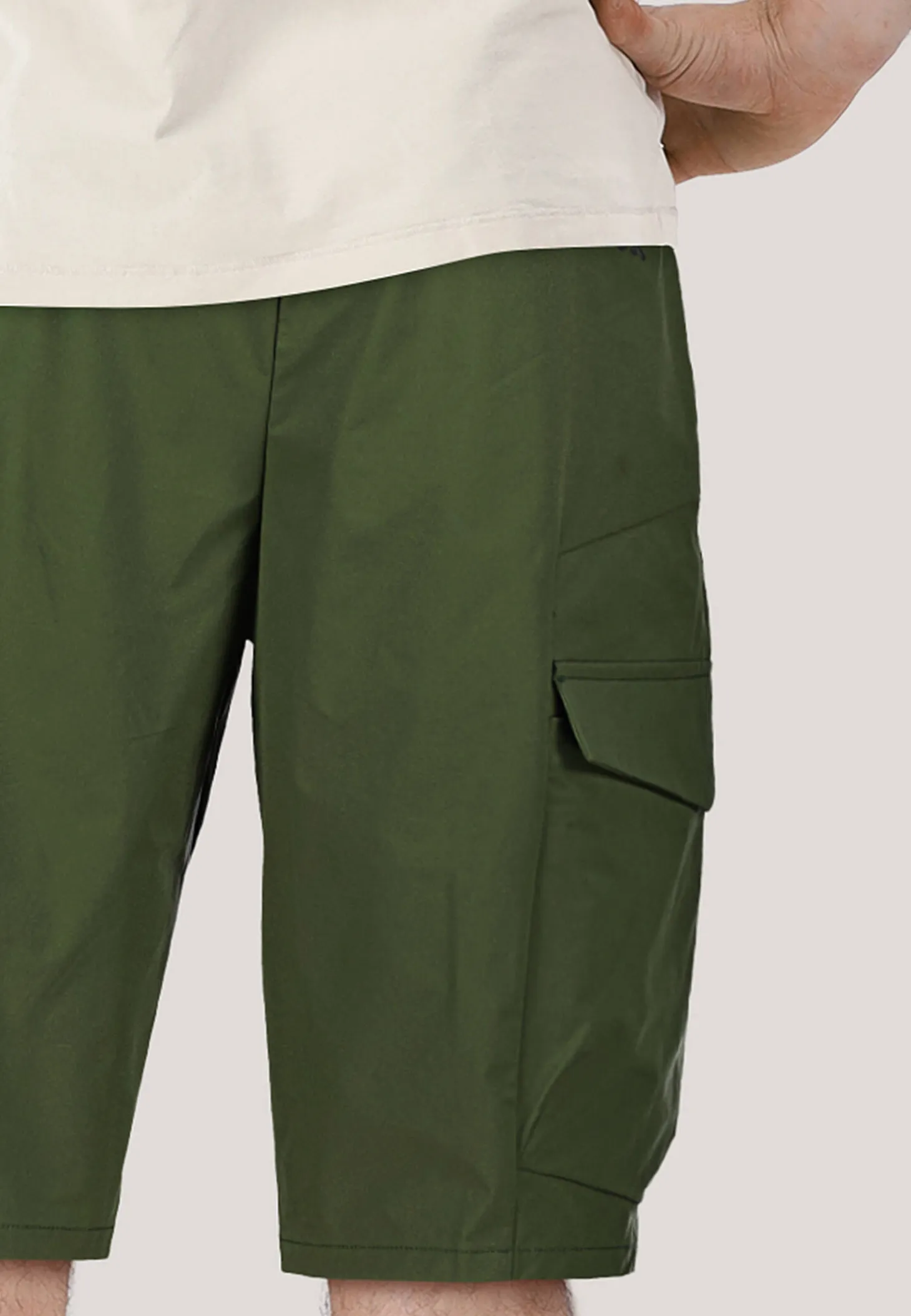 - Eine Gesäßasche mit Reißverschluss, zwei Cargotaschen mit Druckknopfpatte